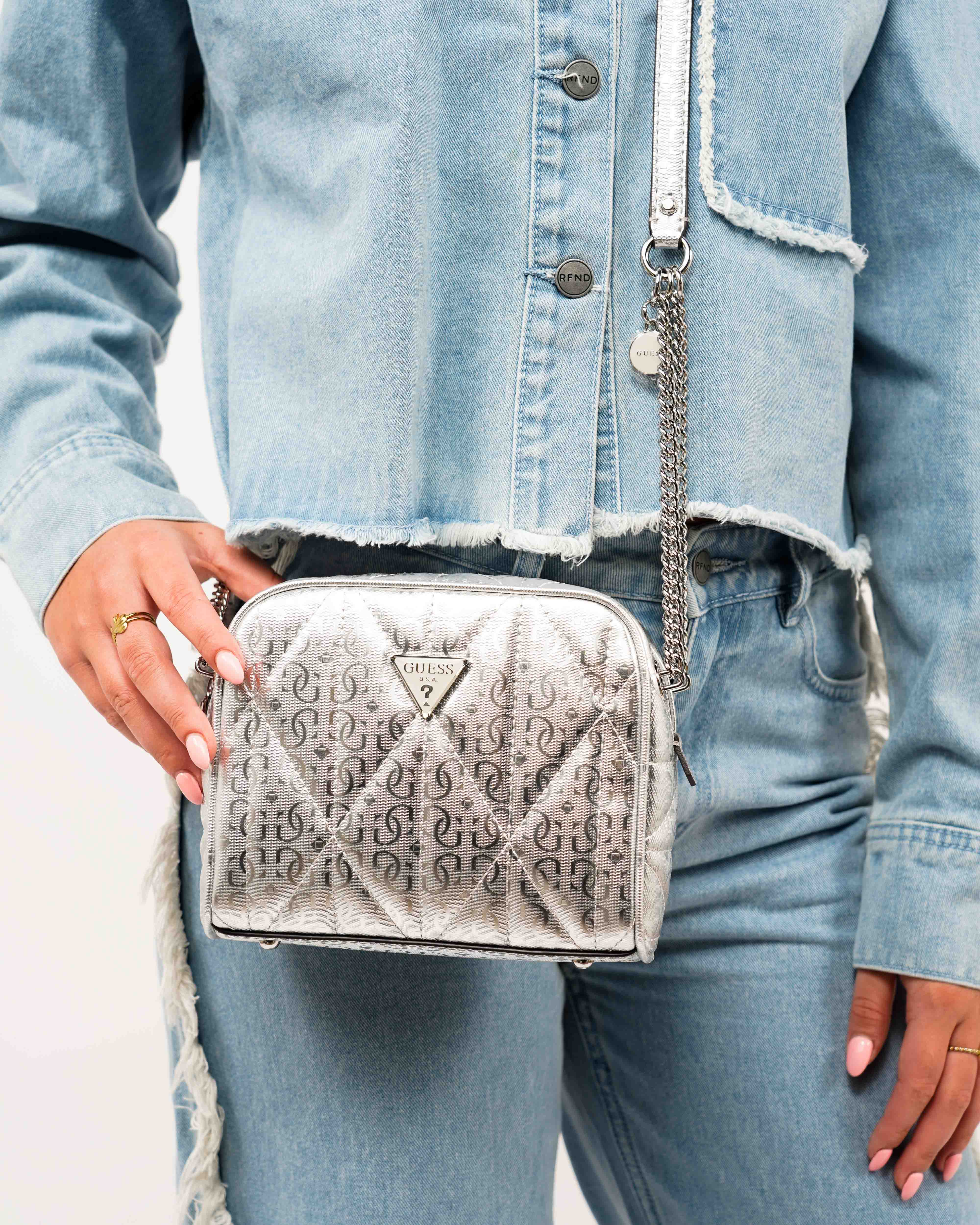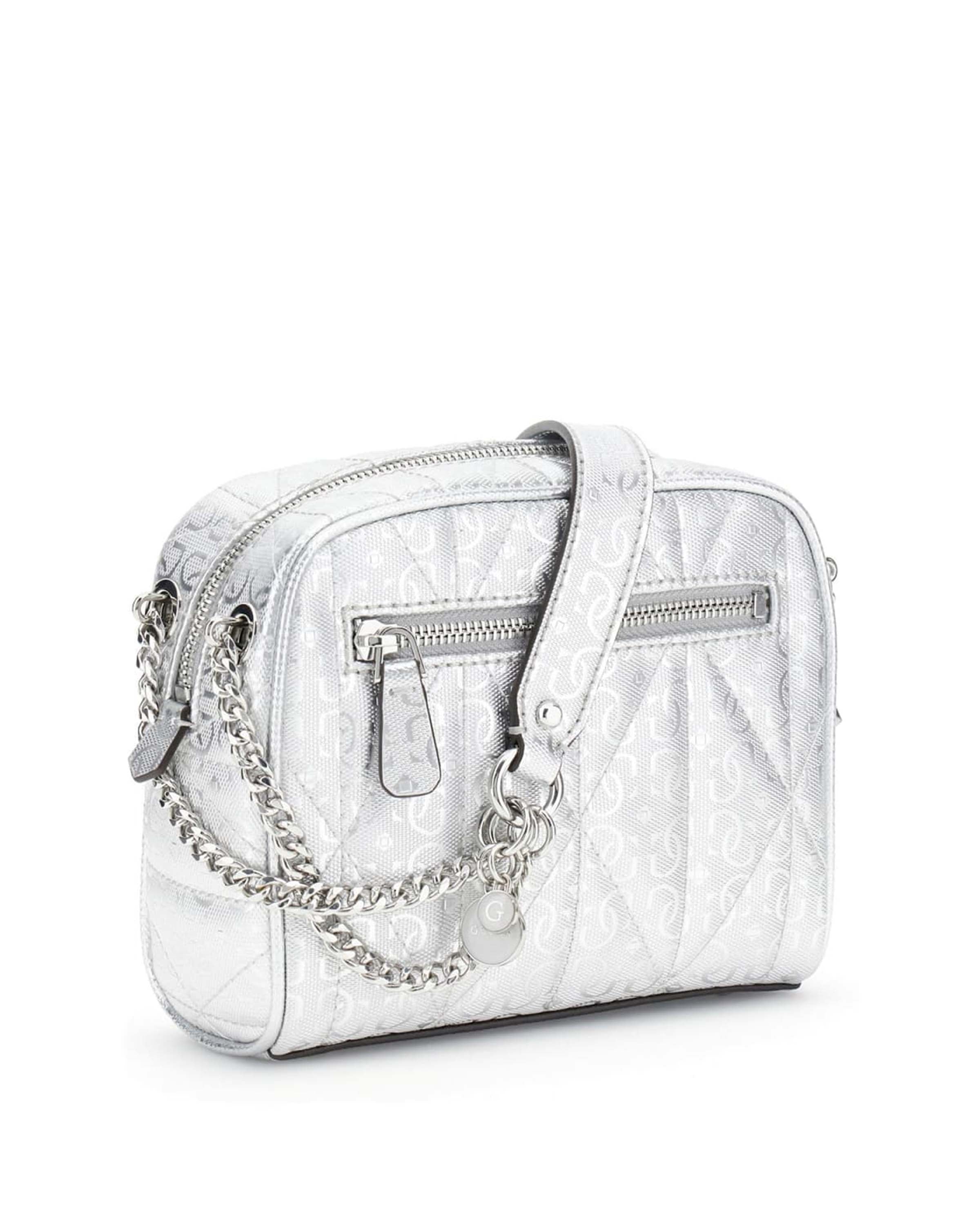 Ontdek de glans van de Aldina Camera Tas van Guess. Deze zilveren crossbody tas voegt een moderne flair toe aan elke outfit. De compacte afmetingen zorgen ervoor dat je al je essentials gemakkelijk kunt meenemen zonder concessies te doen aan stijl. Draagcomfort gecombineerd met een elegante uitstraling maakt dat deze tas je favoriete accessoire wordt.