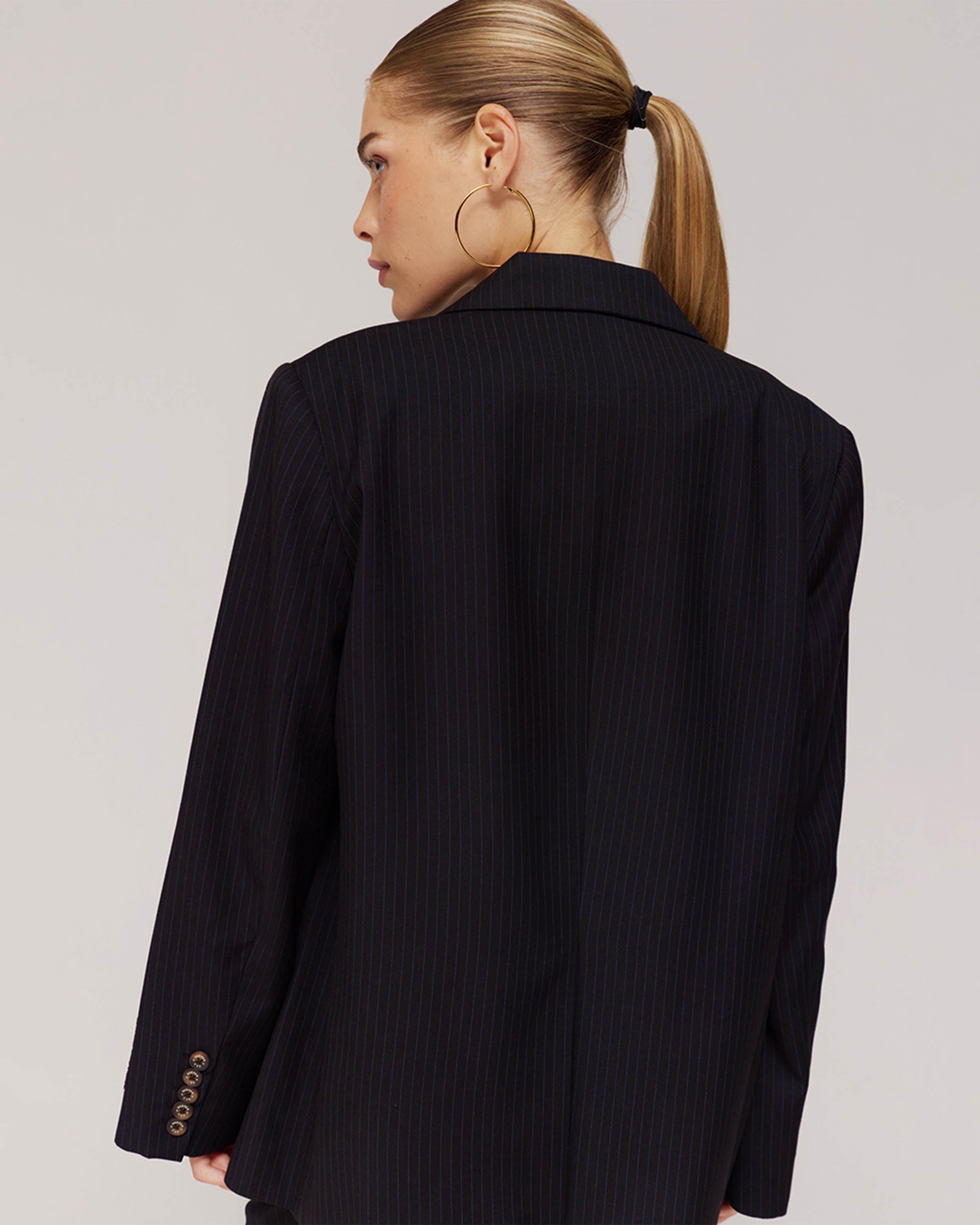 Stap de wereld in met zelfvertrouwen en stijl met de Anna Blazer van Harper and Yve. Deze veelzijdige Blazer straalt een verfijnde elegantie uit, perfect voor elke gelegenheid. De subtiele gestreepte print in Black-Vintage Blue geeft een moderne twist aan het klassieke ontwerp.