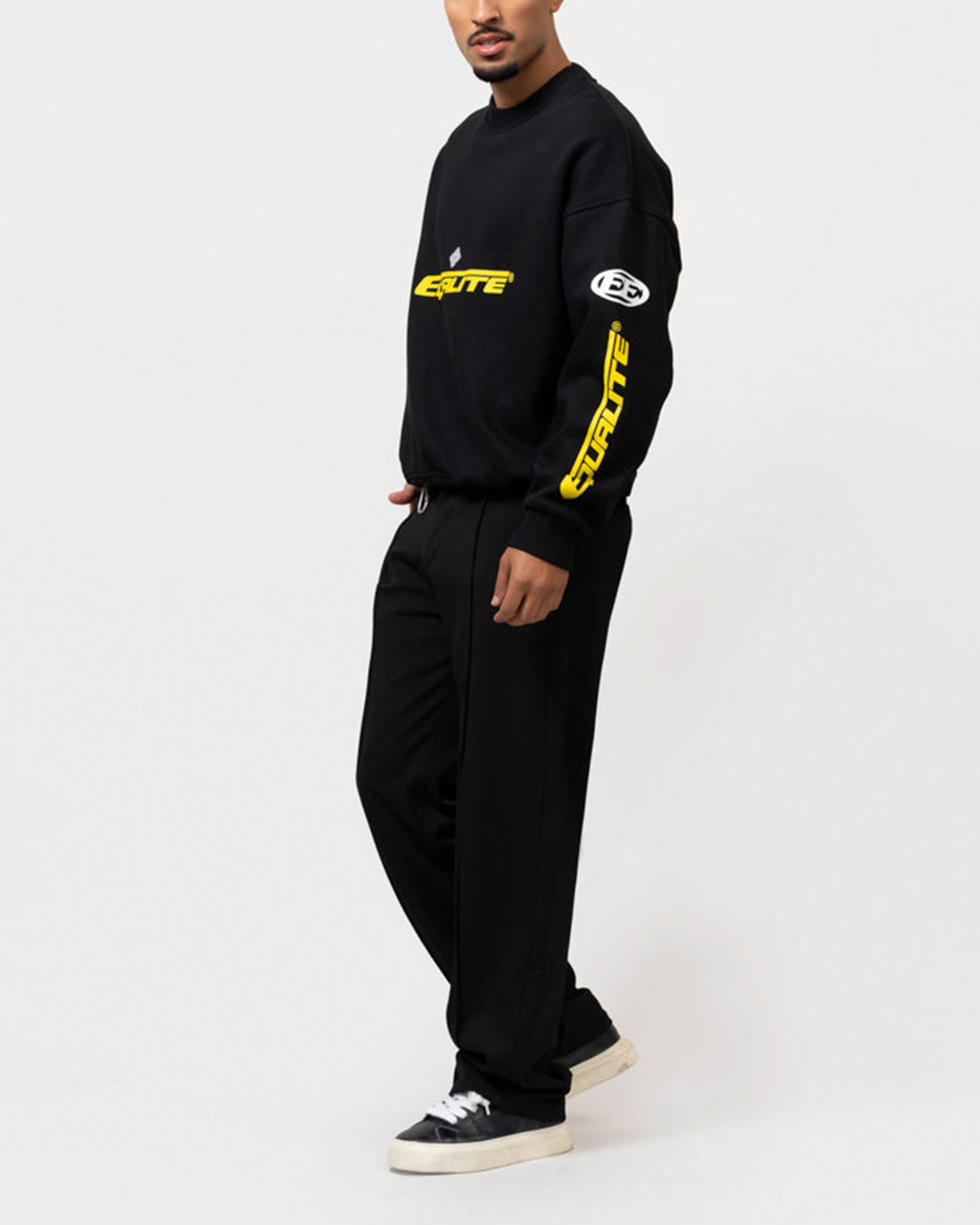Het tijdloze ontwerp in diep zwart geeft deze sweater de veelzijdigheid om hem zowel chill als stoer te dragen. De comfortabele fit houdt je warm en relaxed terwijl je door de stad wandelt of chillt met vrienden. Het is meer dan een kledingstuk; het is een statement.