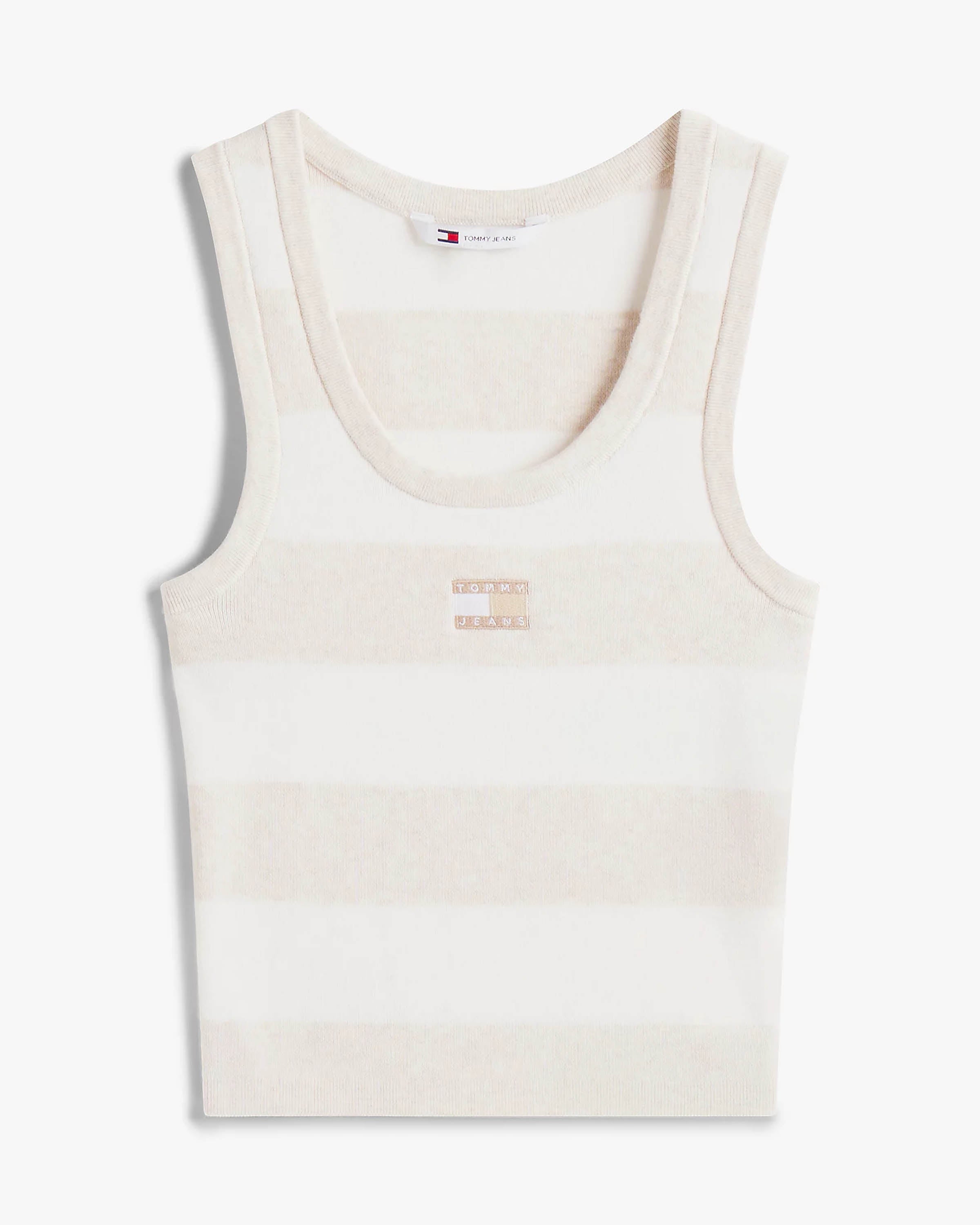 Voor de fashion-forward vrouwen biedt de Crop Stripe Tanktop van Tommy Jeans een tijdloze look met een moderne twist. Deze veelzijdige top, uitgevoerd in een zachte beige tint, combineert stijlvol comfort met eigentijdse flair.