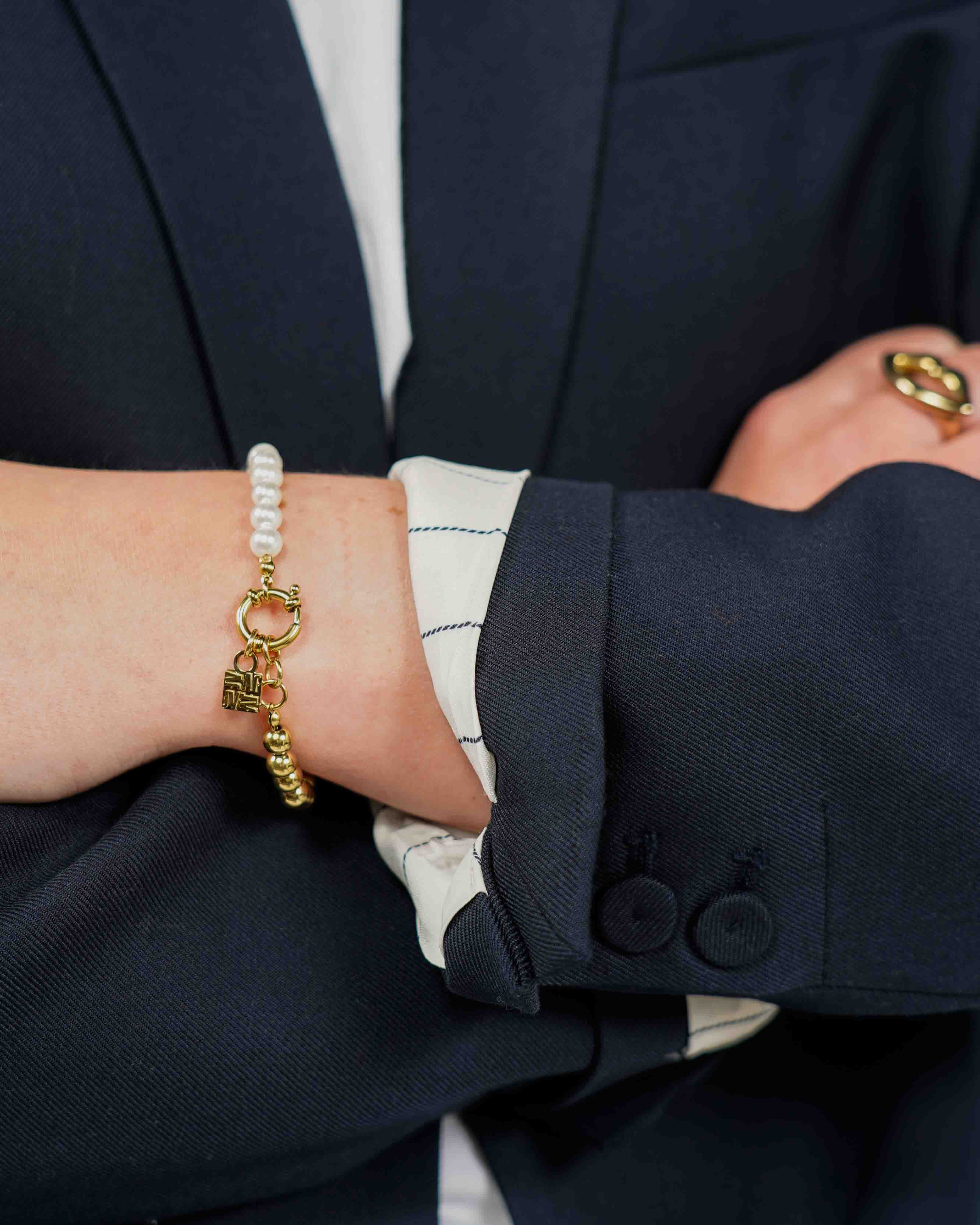 Materiaal: Goudkleurig Staal en parel