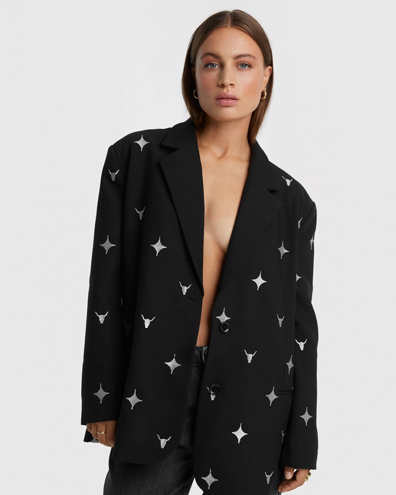 Embroidered Oversized Blazer