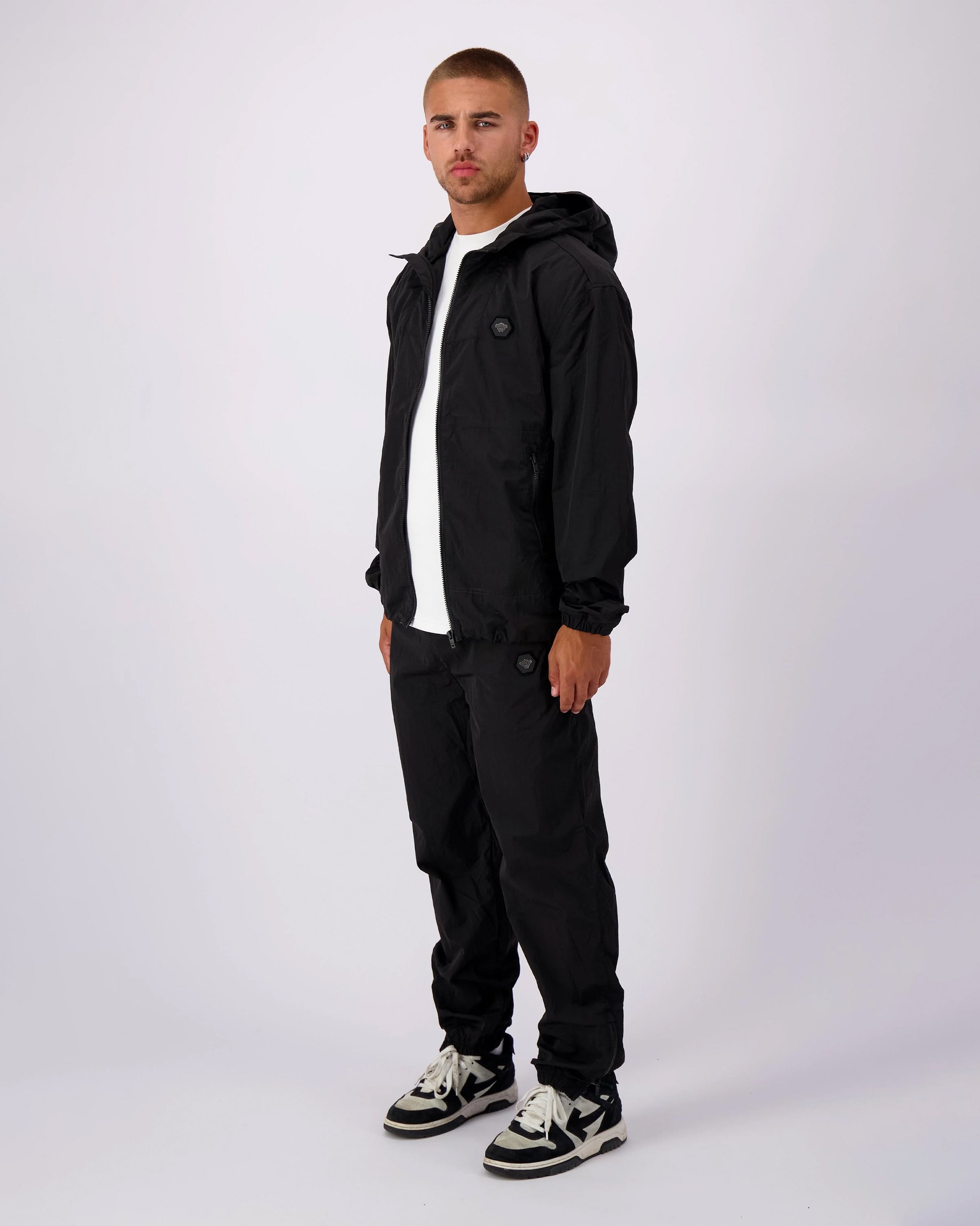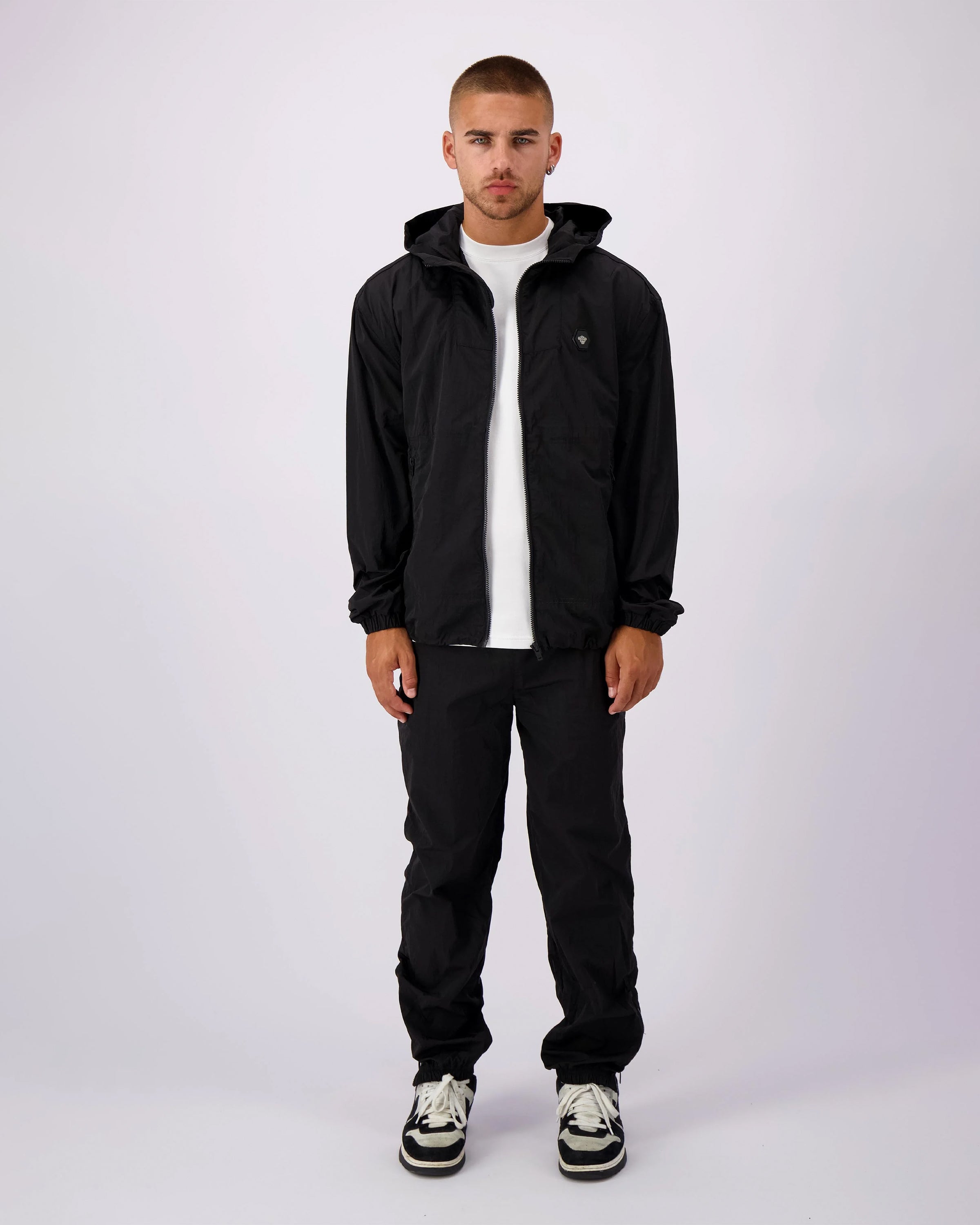Ontsnap aan de massa en kies voor de _Initial Windbreaker Jas_ in stijlvol zwart. Deze lichtgewicht zomerjas is jouw ideale metgezel voor winderige dagen. De jas biedt niet alleen bescherming maar versterkt ook je streetwear look met zijn coole design en iconische logo.