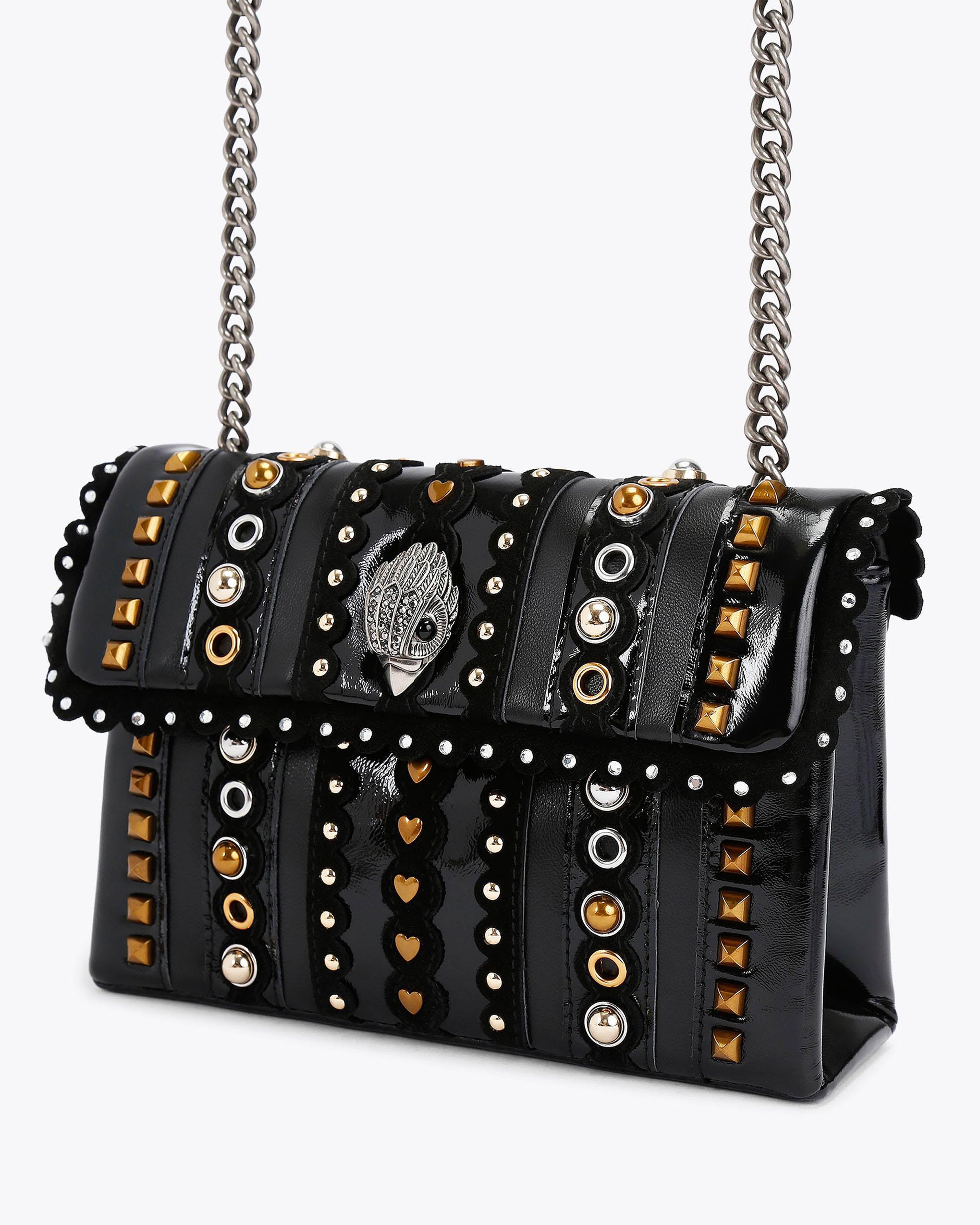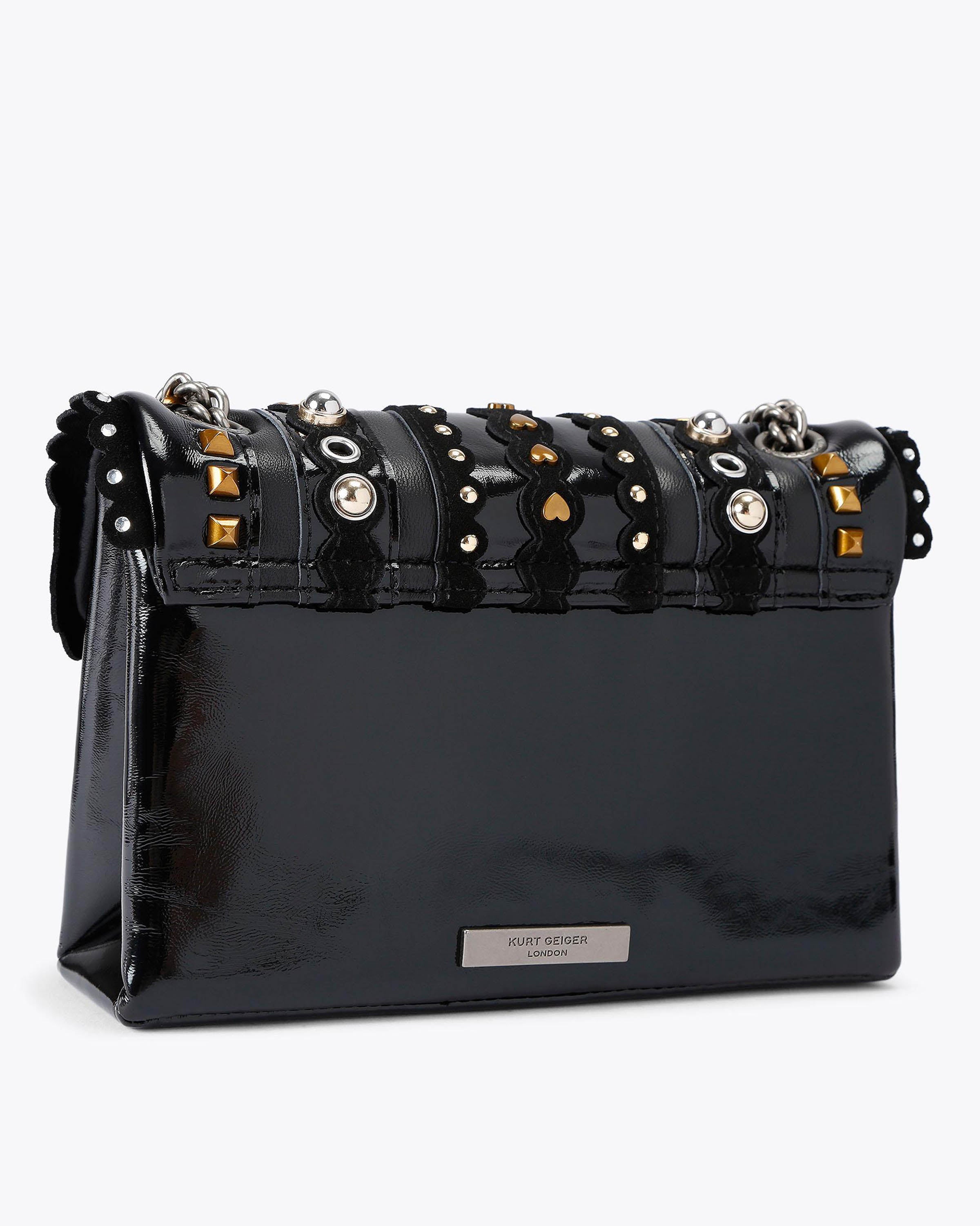 Deze Kensington Medium Studs Combo Leather van Kurt Geiger is de definitie van subtiele luxe. Met zijn zwarte leren afwerking en opvallende studs biedt deze tas niet alleen stijl, maar ook veelzijdigheid.