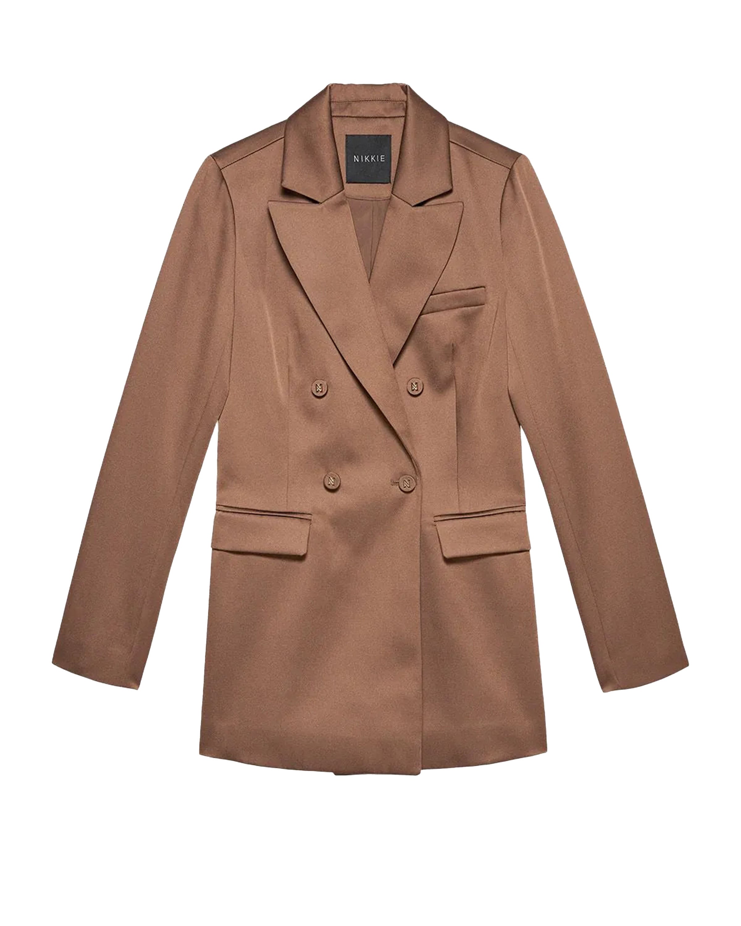 De stijlvolle *Omahah Blazer* in beige is de perfecte aanvulling op elke garderobe. Deze chique Blazer van het merk Nikkie zorgt voor een verfijnde en elegante uitstraling. Dankzij de zachte kleur is het eenvoudig te combineren met zowel zakelijke als casual outfits.