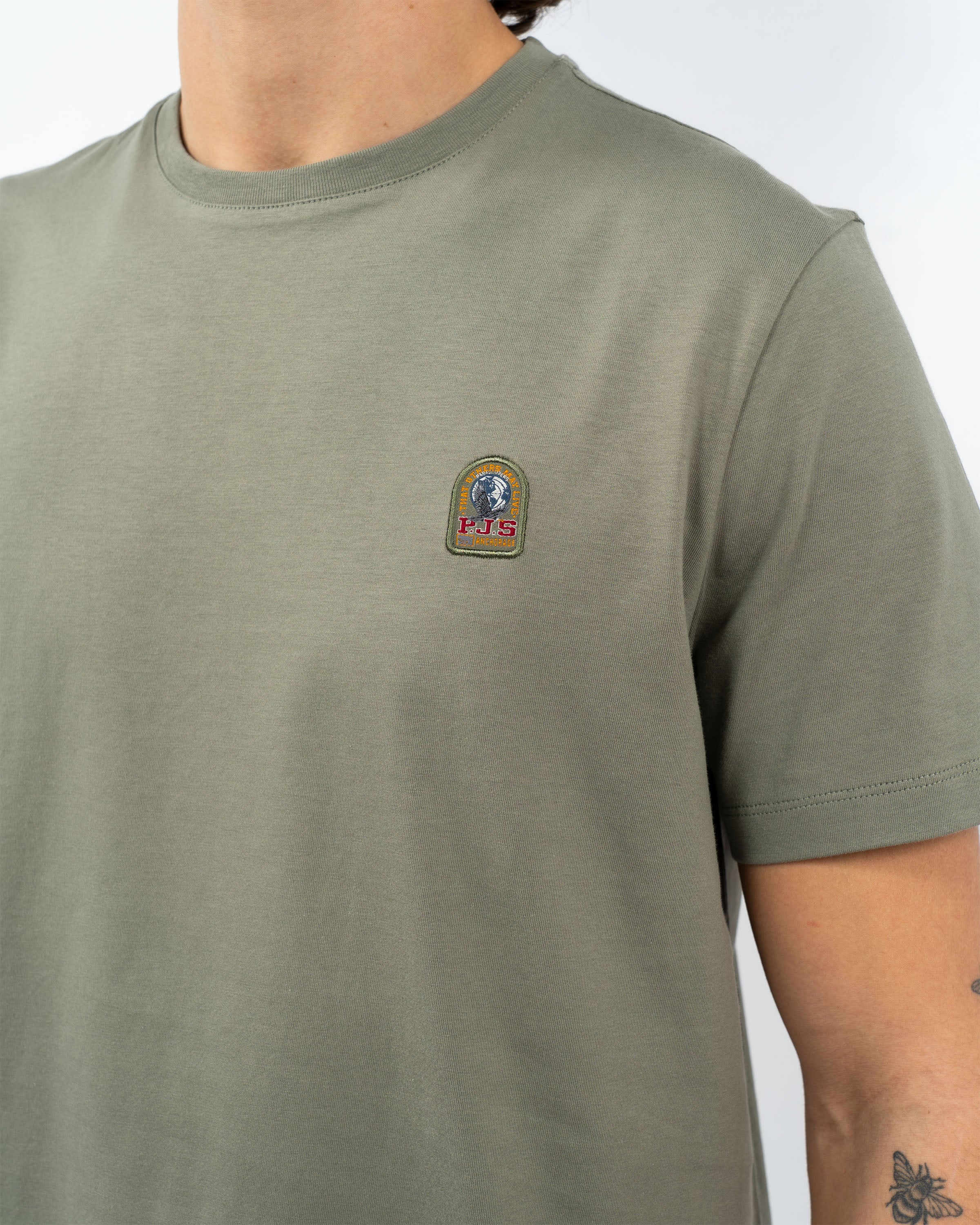 Ontdek de tijdloze stijl en kwaliteit van het _Patch T-Shirt_ van _Parajumpers_. Dit luxe kledingstuk voegt een elegant accent toe aan elke garderobe en is met zorg vervaardigd voor een verfijnde uitstraling. De subtiele _beige_ tint gecombineerd met de kenmerkende details van Parajumpers zorgt voor een harmonieus geheel. Dankzij het ademende katoenmateriaal biedt het T-shirt ultiem comfort gedurende de gehele dag.