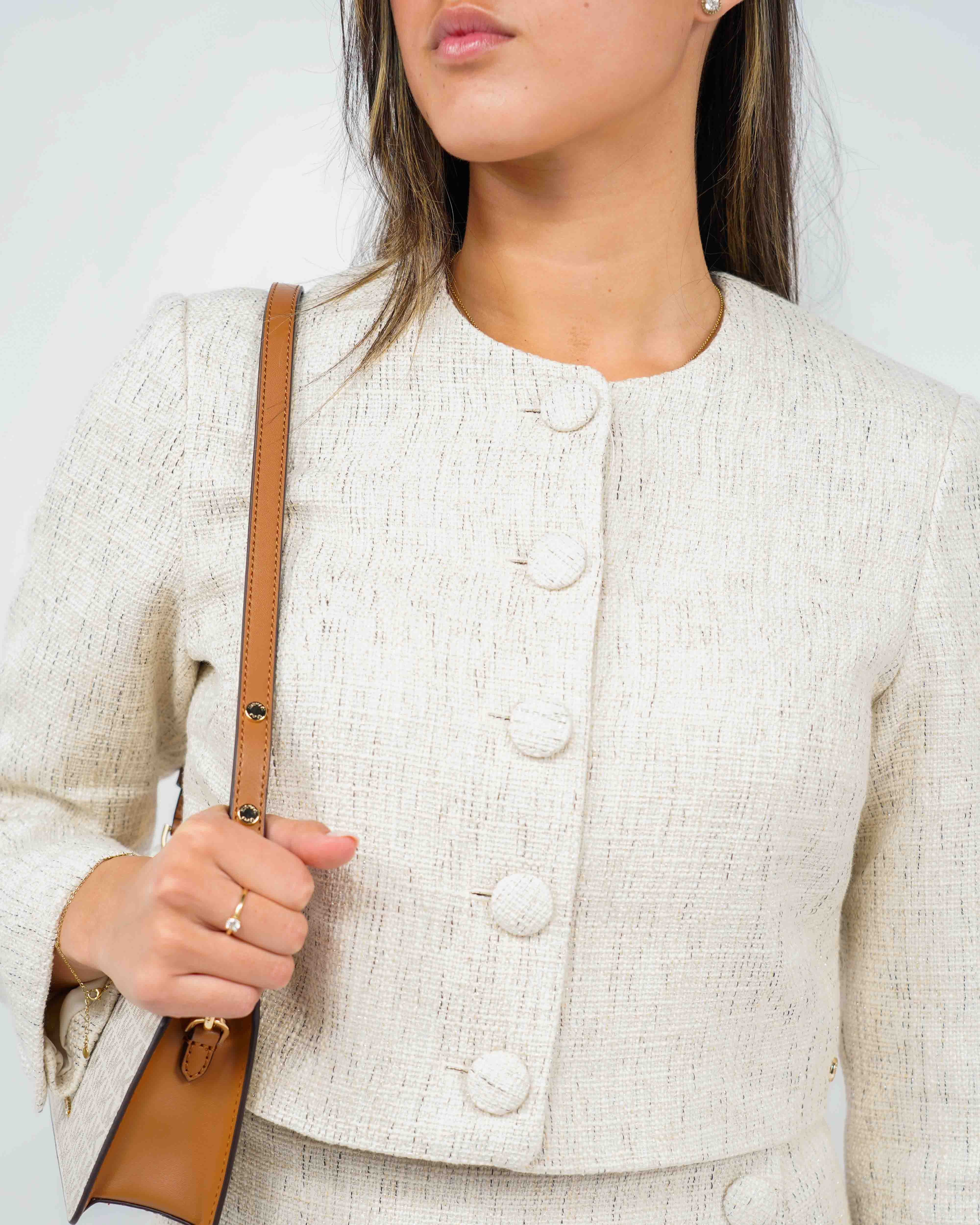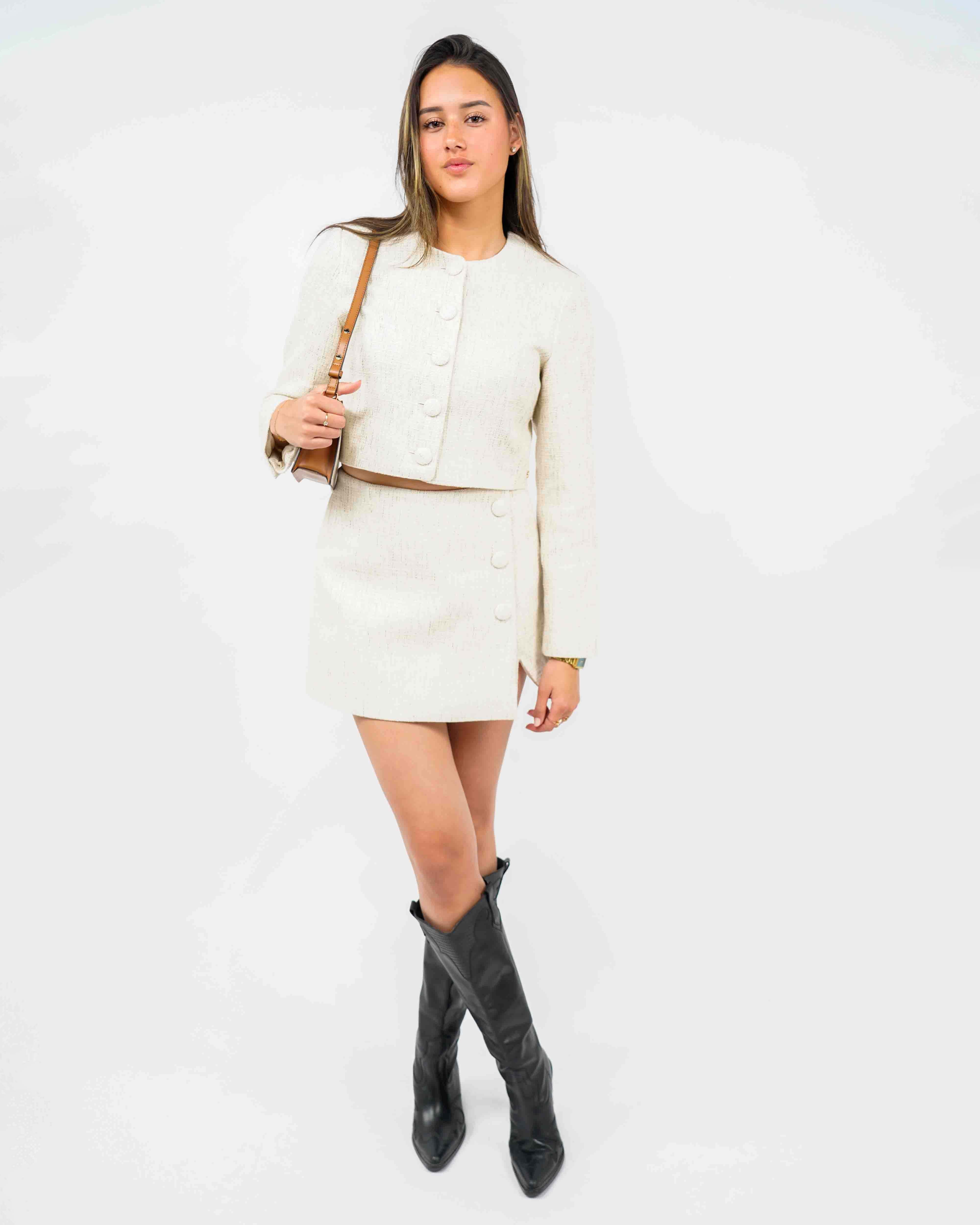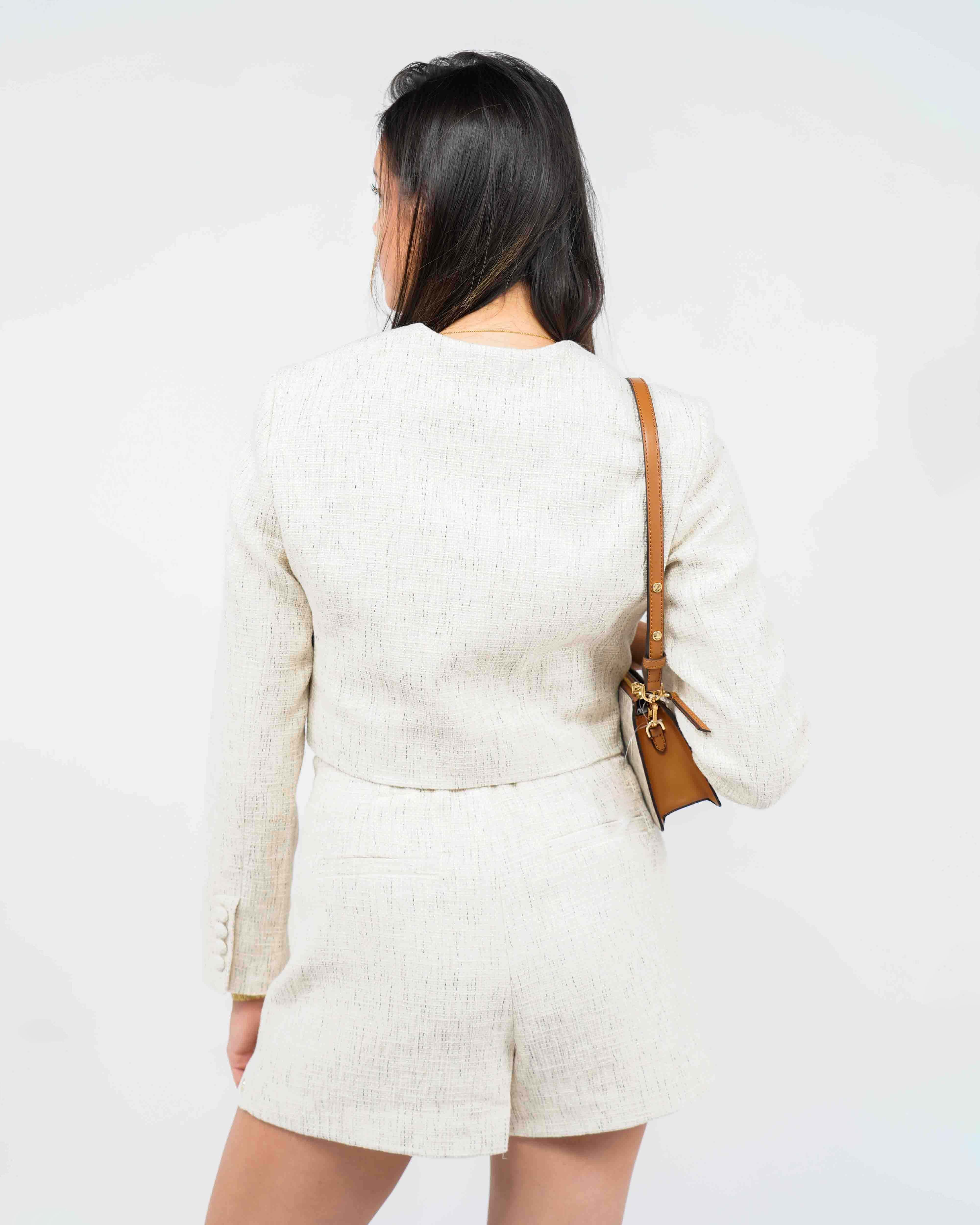Ervaar tijdloze elegantie met de prachtige Remi Jas in ecru. Deze unieke jasje brengt een verfijnde balans in iedere garderobe. Perfect voor dames die houden van een stijlvolle en toch comfortabele look, waarbij de structuur en lichte kleur moeiteloos combineren met zowel casual als formele outfits.