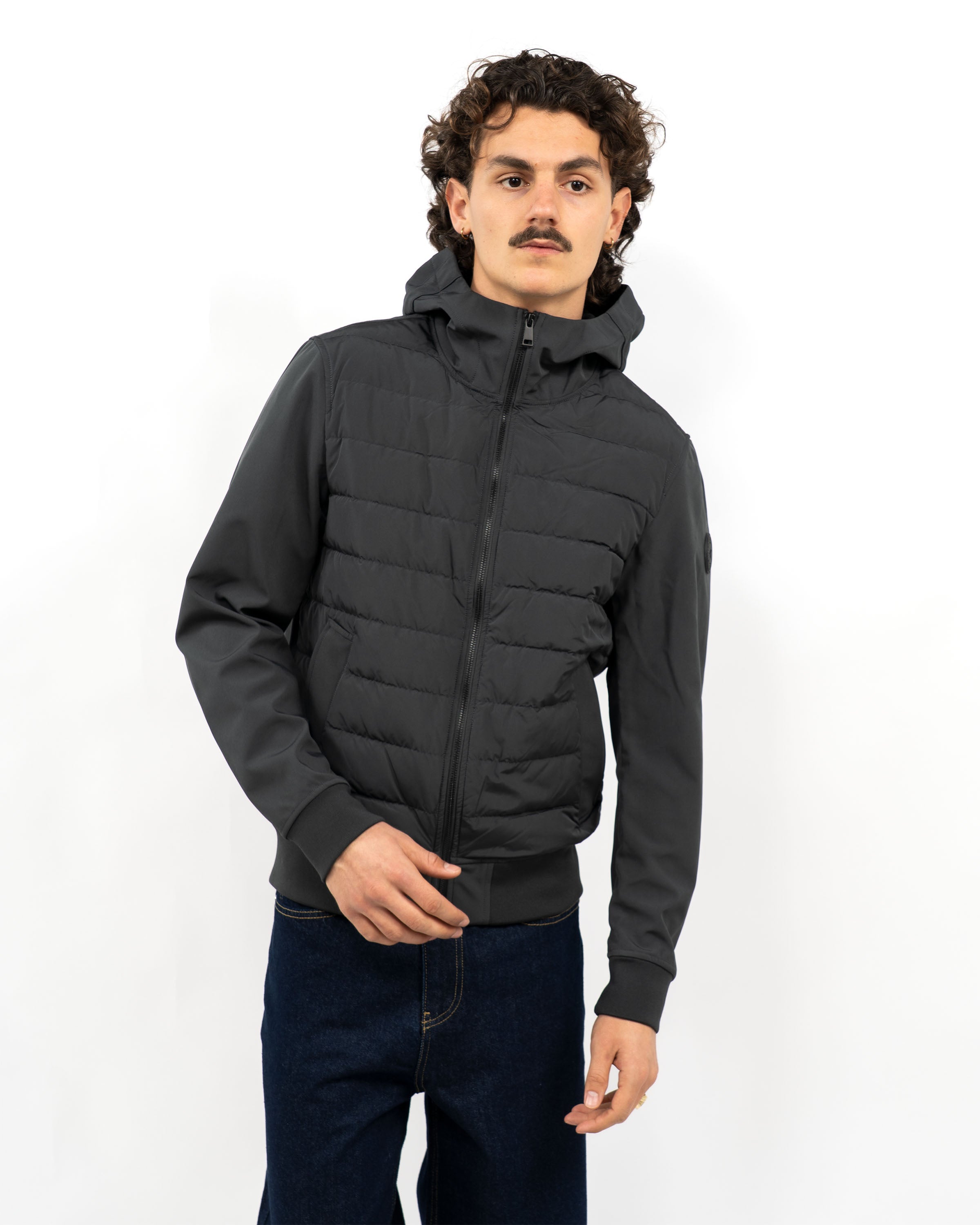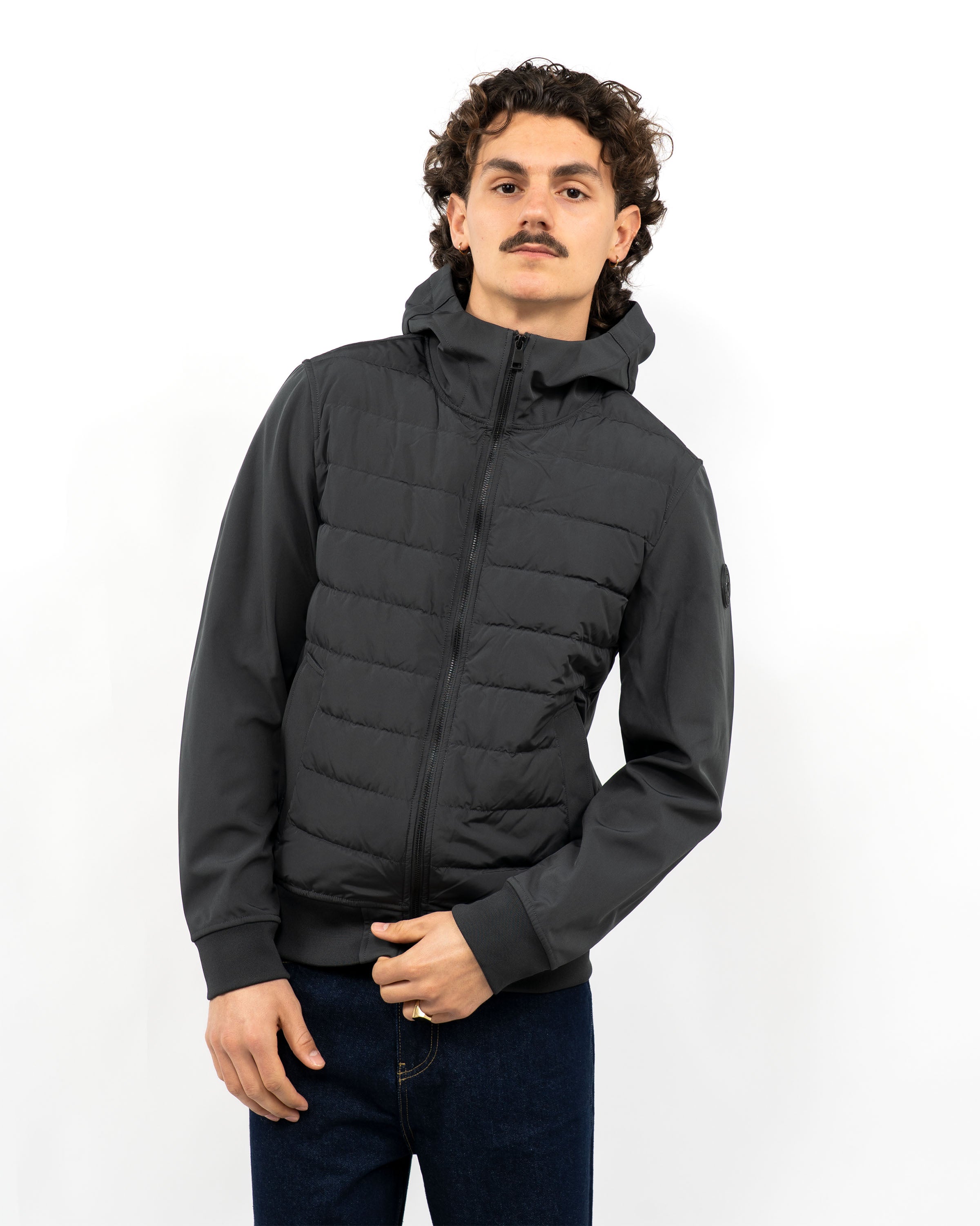 De subtiele details en strakke lijnen van de Softshell maken het een tijdloos stuk dat gemakkelijk gecombineerd kan worden met elke look. Veilig je essentials opbergen kan dankzij de handige zakken met ritsen. Daarnaast biedt de elastische capuchon extra bescherming tegen wind en regen.