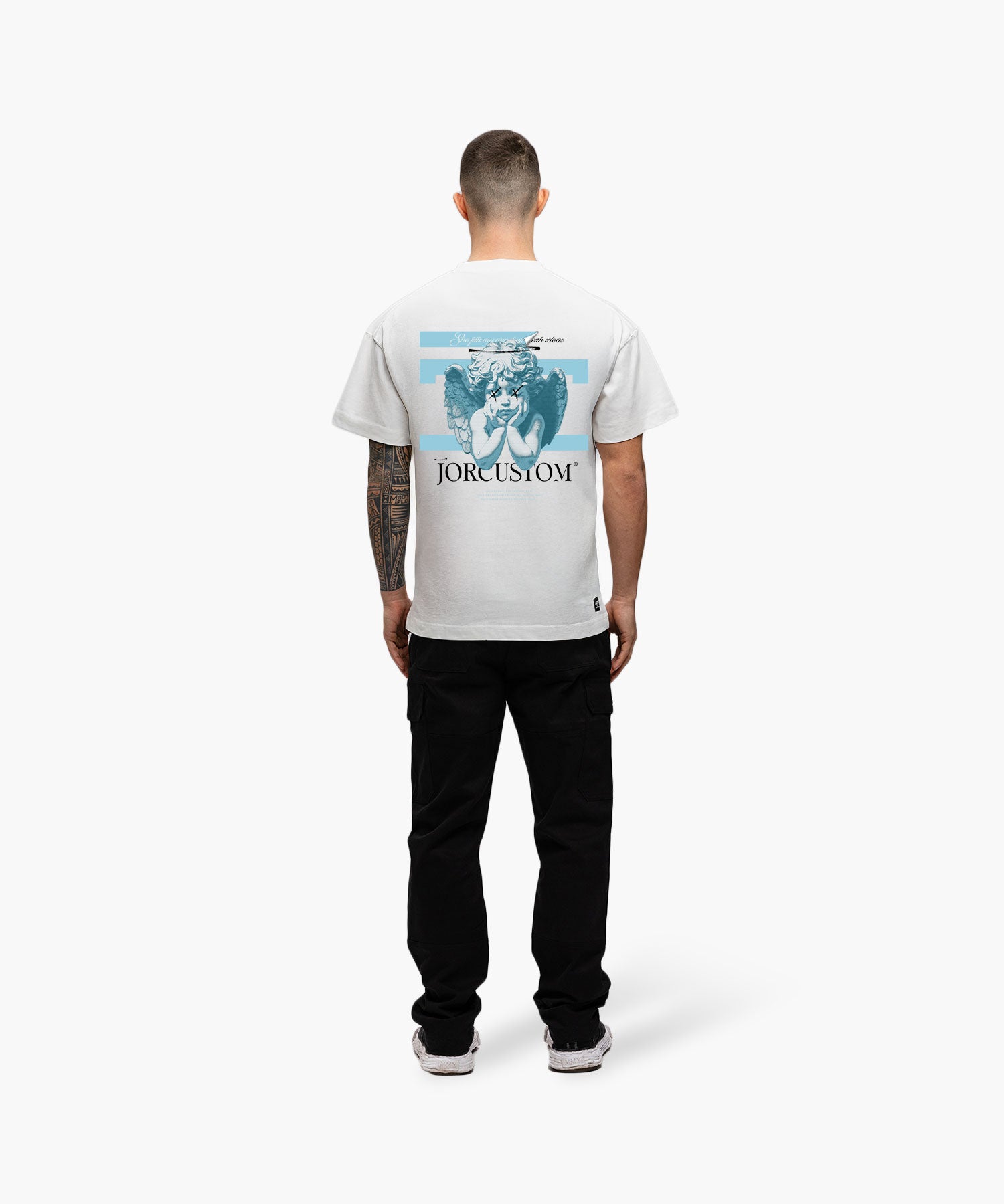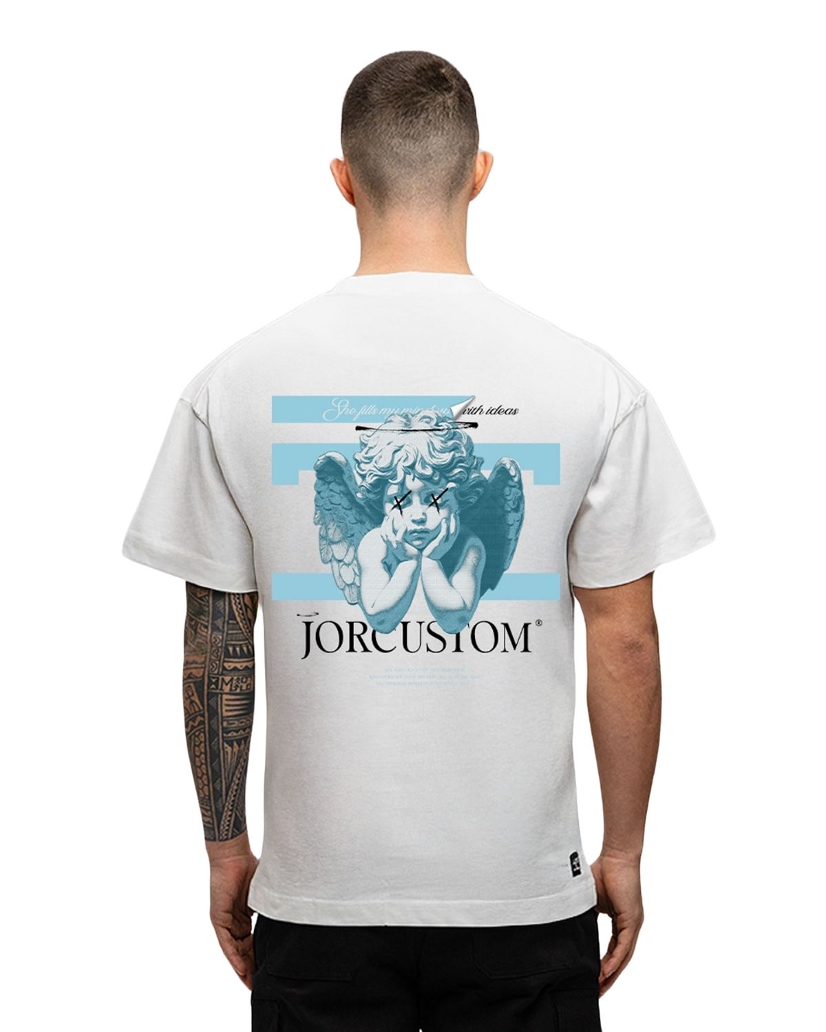Dompel jezelf onder in de edgy wereld van JorCustom met het Angel 2.0 T-Shirt. Dit opvallende T-shirt combineert comfortabele loose-fit pasvorm met 100% premium katoen. Heb je een voorkeur voor een Loose Fit stijl, dan is dit jouw go-to. Opvallend in wit, dit T-shirt is meer dan een basic. De subtiele details maken dit kledingstuk net zo uniek als jij.