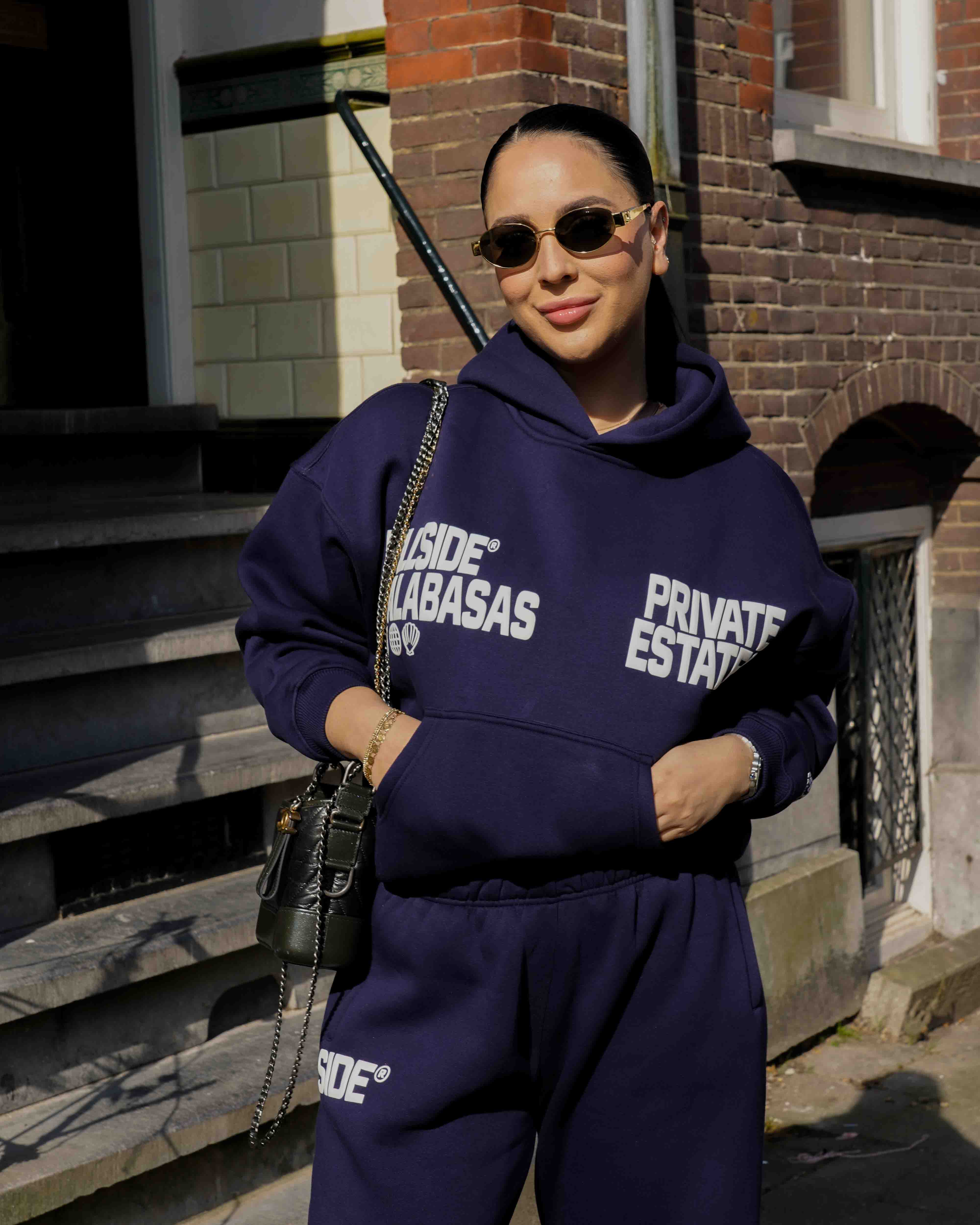 Met het Calabasas Trainingspak van Hillside, ervaar je eersteklas luxe in dames trainingspakken. De diepblauwe kleur straalt elegantie uit, terwijl het hoogwaardige katoen zorgt voor maximale bewegingsvrijheid en comfort. Dit veelzijdige kledingstuk is perfect voor zowel een sportieve dag als een ontspannen avond.