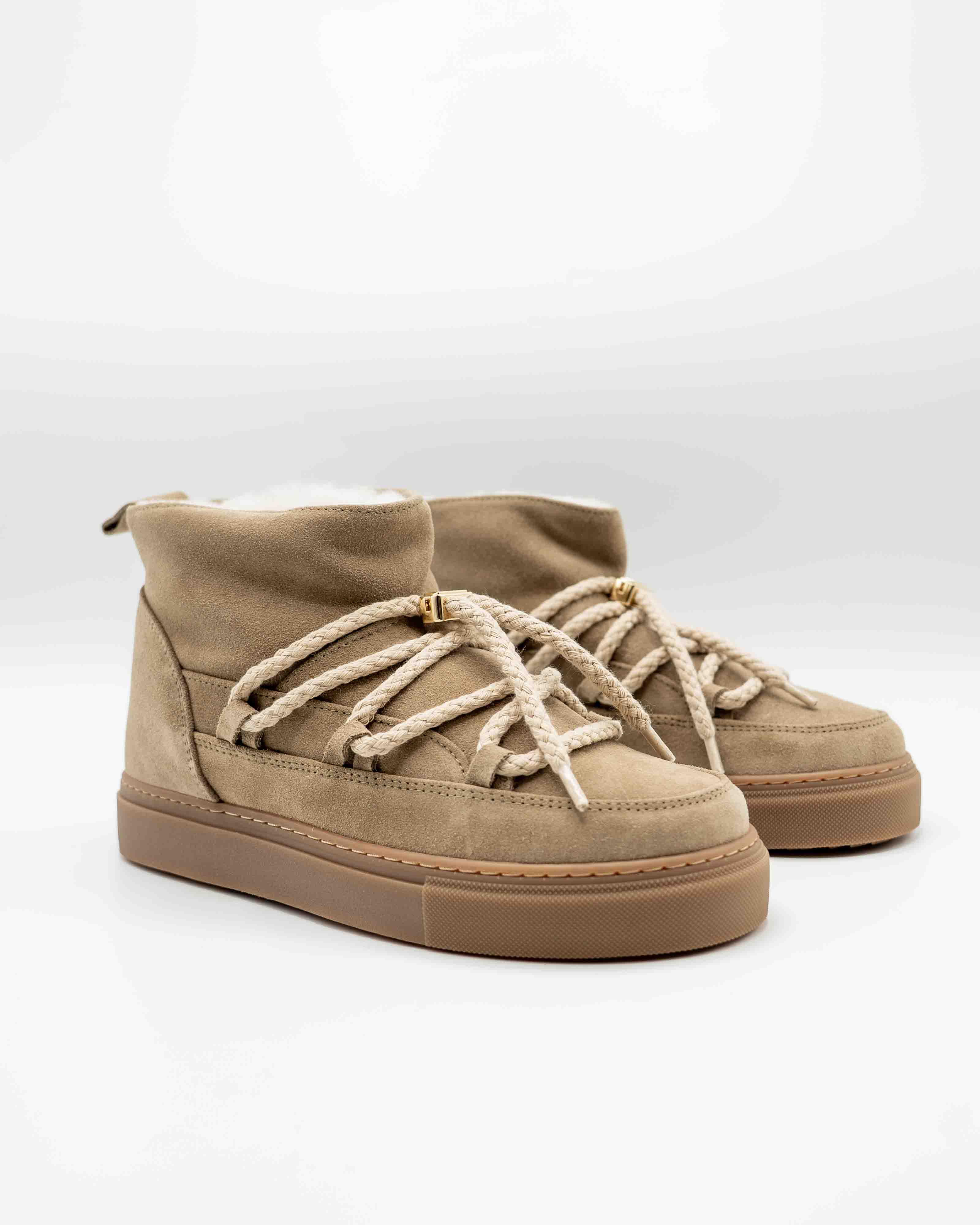Ontdek de tijdloze elegantie van de Inuikii Classic Low Boots in Beige.