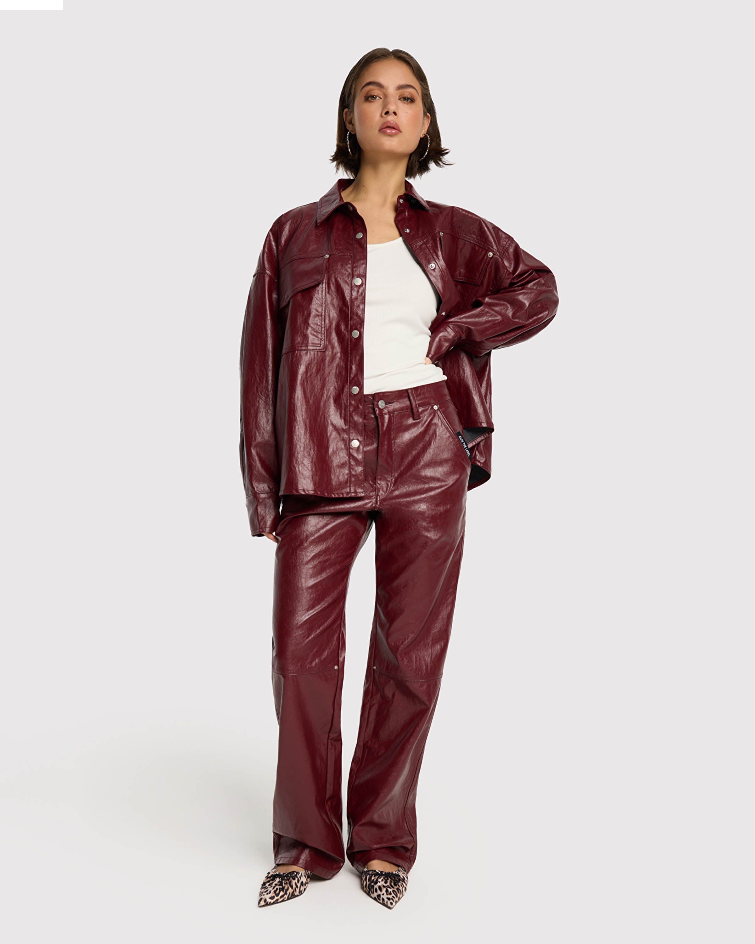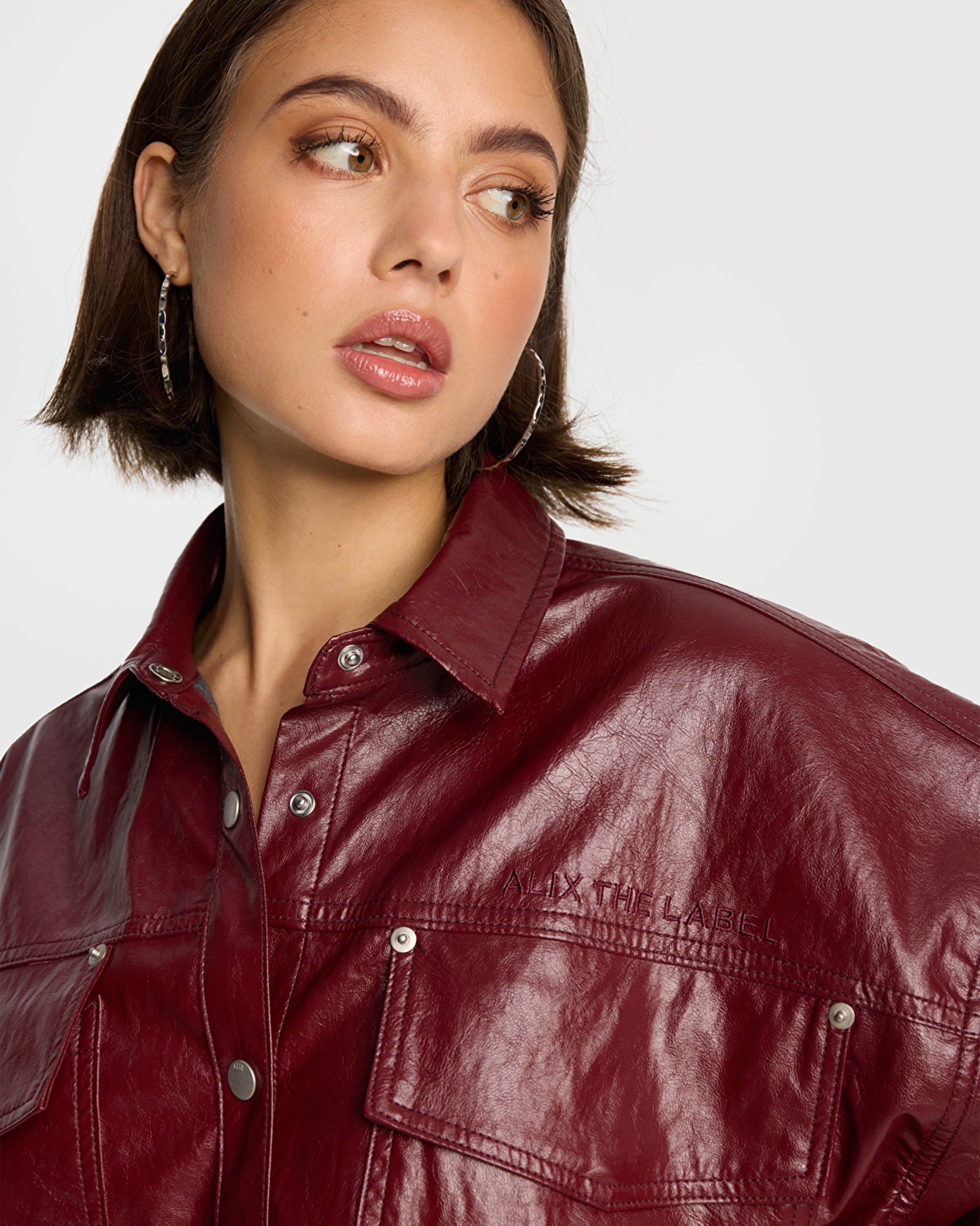 Faux Leather Blouse, Bordeaux