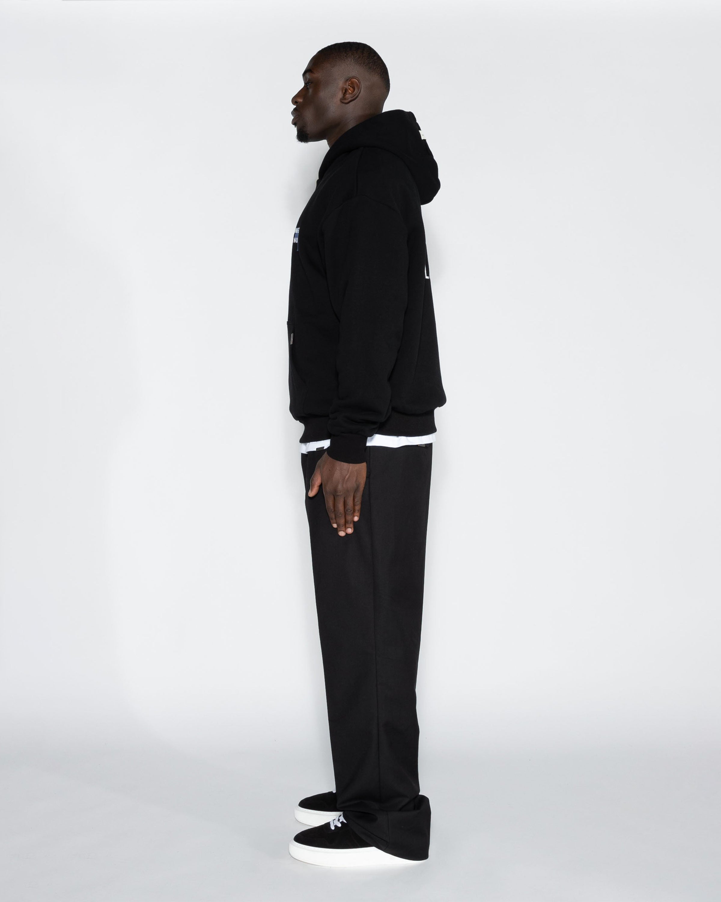 De Hoodie is perfect voor elke gelegenheid, of je nu de straten van de stad verkent of relaxte dagen beleeft. Het oversized design zorgt voor een relaxte pasvorm die altijd stijlvol blijft, terwijl de diepe zwarte kleur moeiteloos te combineren is met je favoriete streetwear.