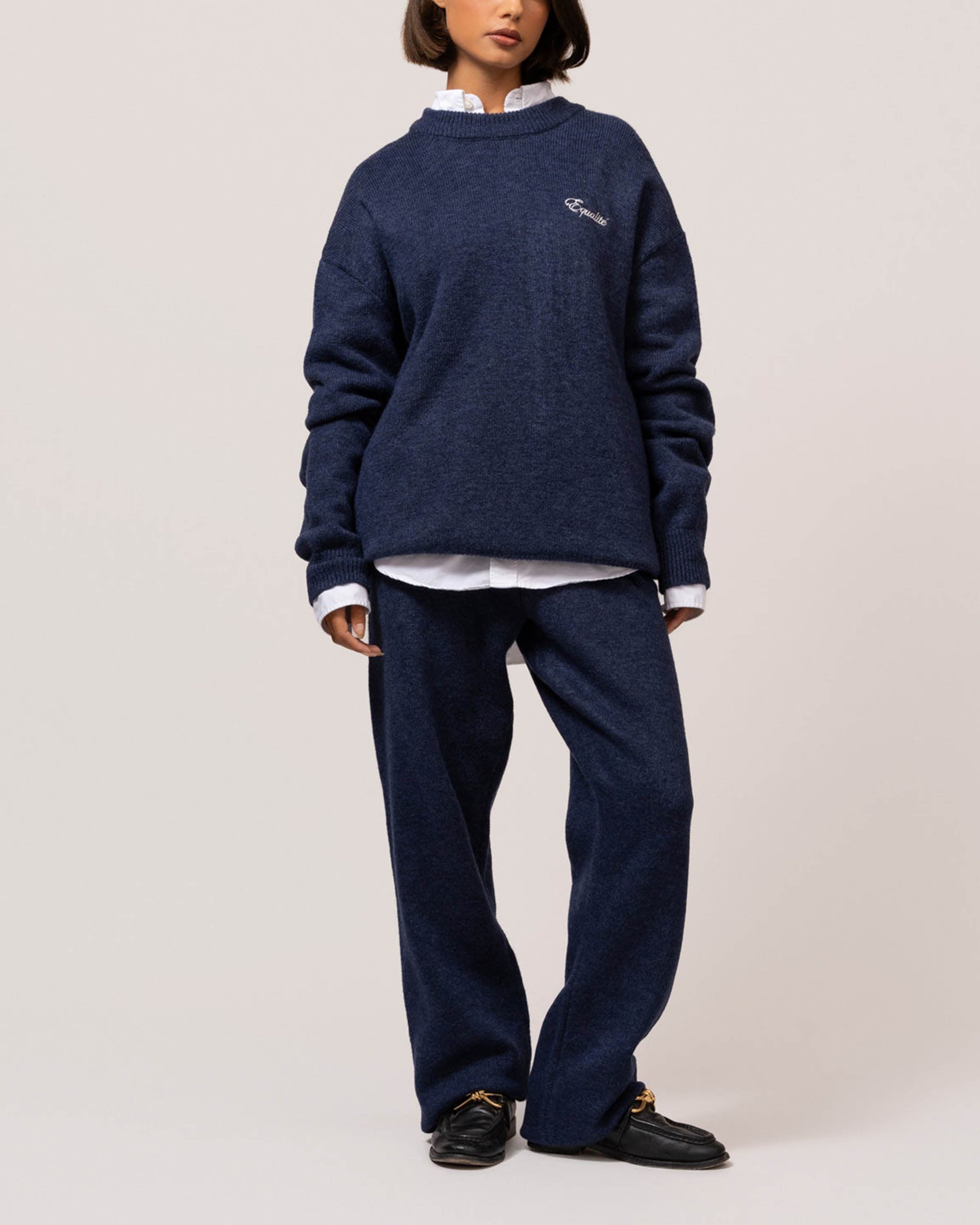 Stap in de wereld van straatmode met de Fluffy Knit Sweater in Navy. Deze coole, zachte sweater uit de Truien en Vesten collectie van Equalite brengt comfort en stijl naar een hoger niveau.