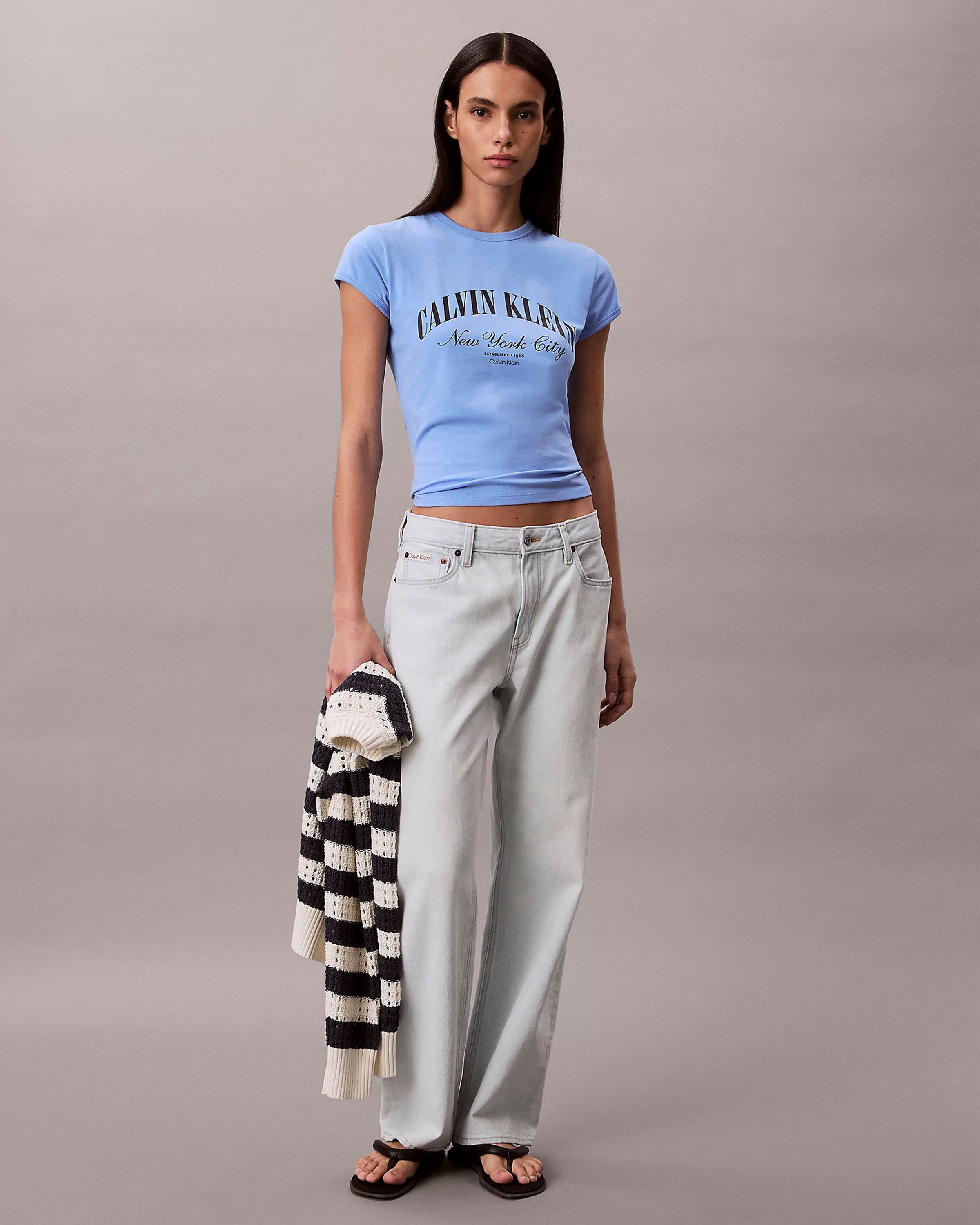 Ervaar tijdloze stijl met het Graphic Logo Baby T-Shirt van Calvin Klein. Dit dames T-shirt in een frisse blauwe kleur geeft je garderobe een subtiele upgrade. Het iconische logo op de borst voegt direct een vleugje luxe toe aan je look.