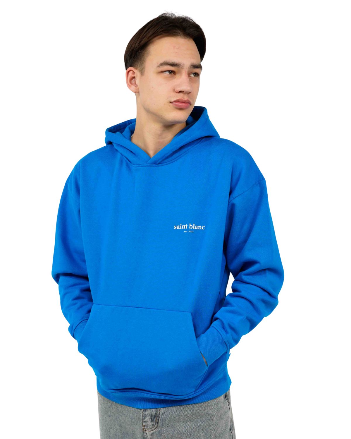 Saint Blanc hoodies vallen oversized.
