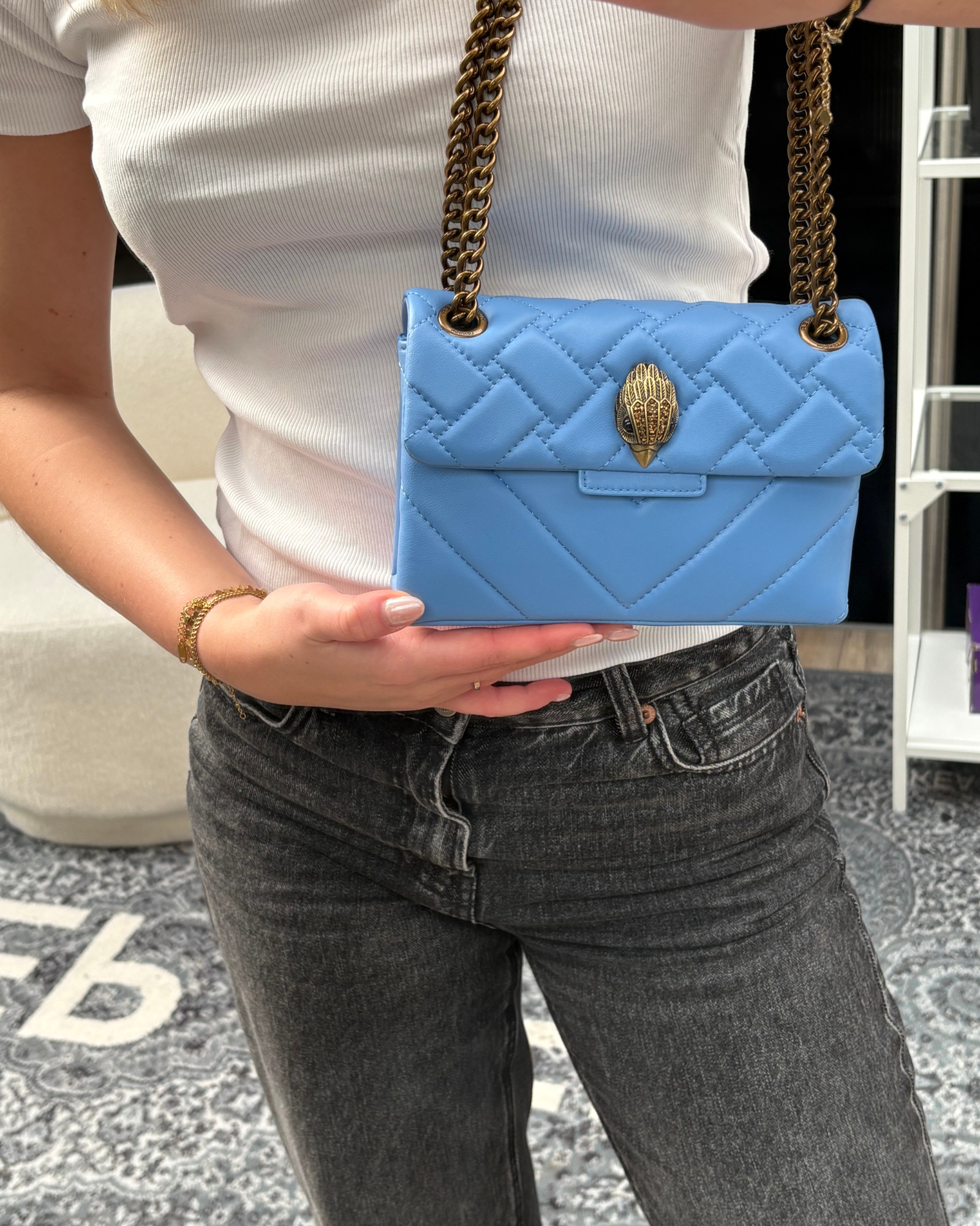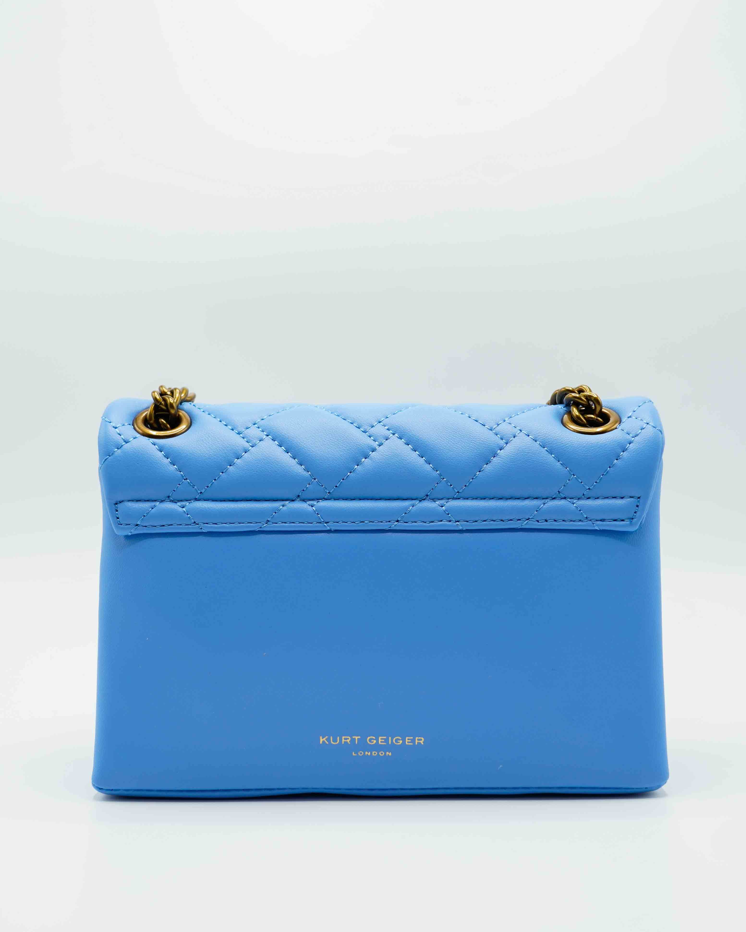Met zijn elegante blauwe kleur en het iconische ontwerp van Kurt Geiger, is deze handtas een must-have accessoire. De compacte afmetingen maken het ideaal voor dagelijkse uitstapjes terwijl het genoeg ruimte biedt voor je essentiële items. Het hoogwaardige leer straalt duurzaamheid en klasse uit, waardoor het een investering is die de tand des tijds doorstaat.