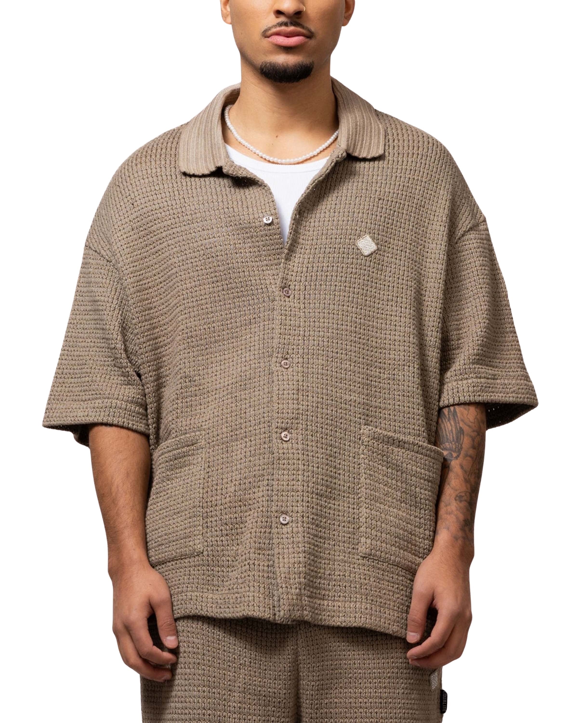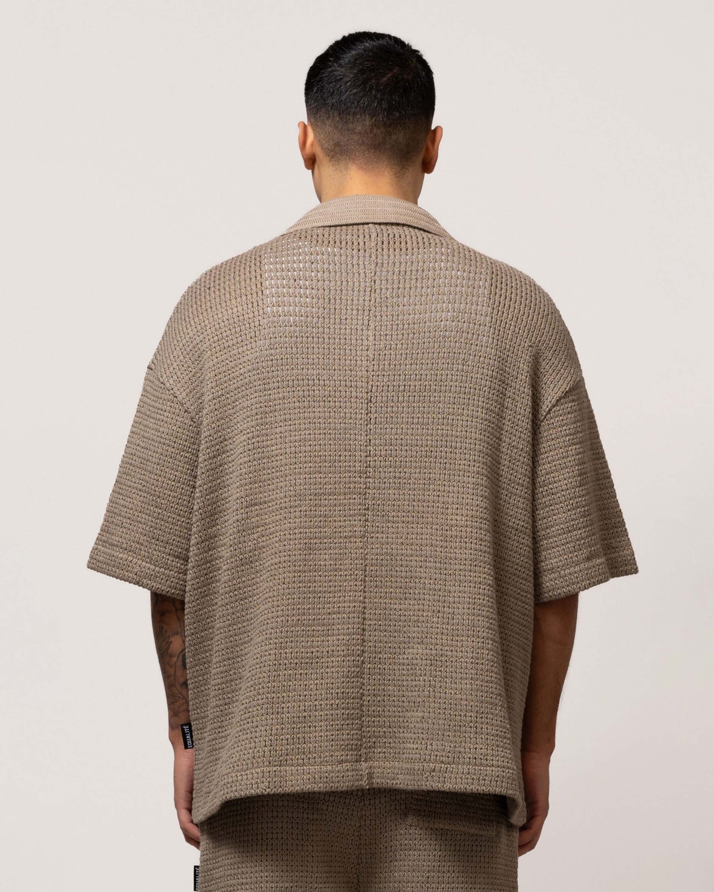 Lyra Knitted Croched Shirt, Taupe