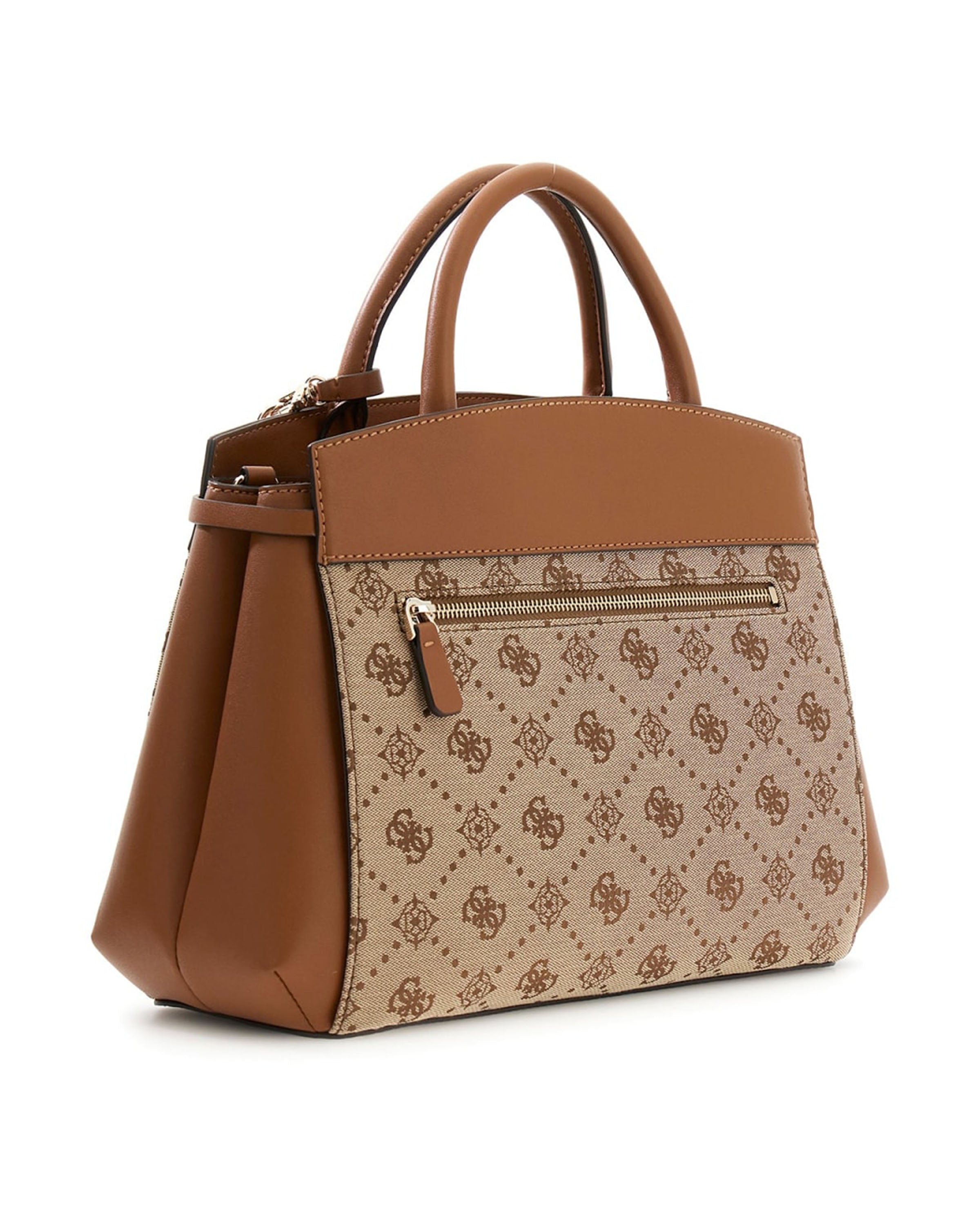 De _Melinda Logo Schoudertas_ in klassiek bruin straalt verfijning uit. Deze stijlvolle tas, ontworpen door het iconische merk _Guess_, is perfect voor elke gelegenheid. Dankzij het ruim ontworpen interieur kunt u uw dagelijkse benodigdheden moeiteloos organiseren. De subtiele logo-opdrukken geven een vleugje elegantie zonder te overheersen.