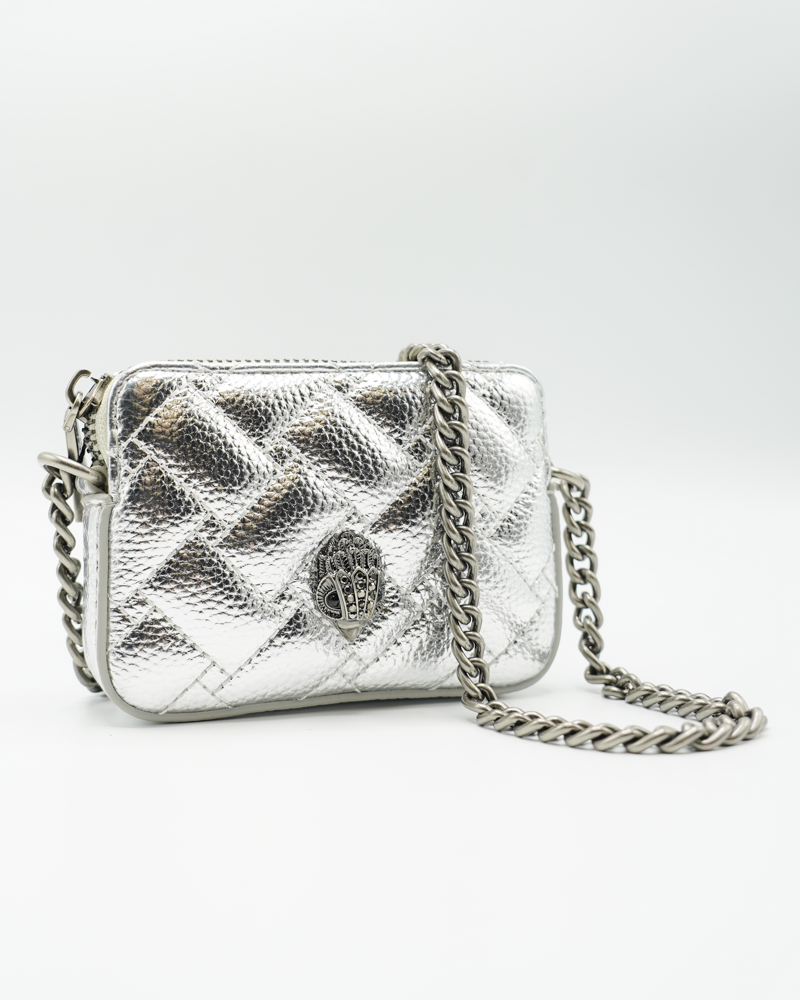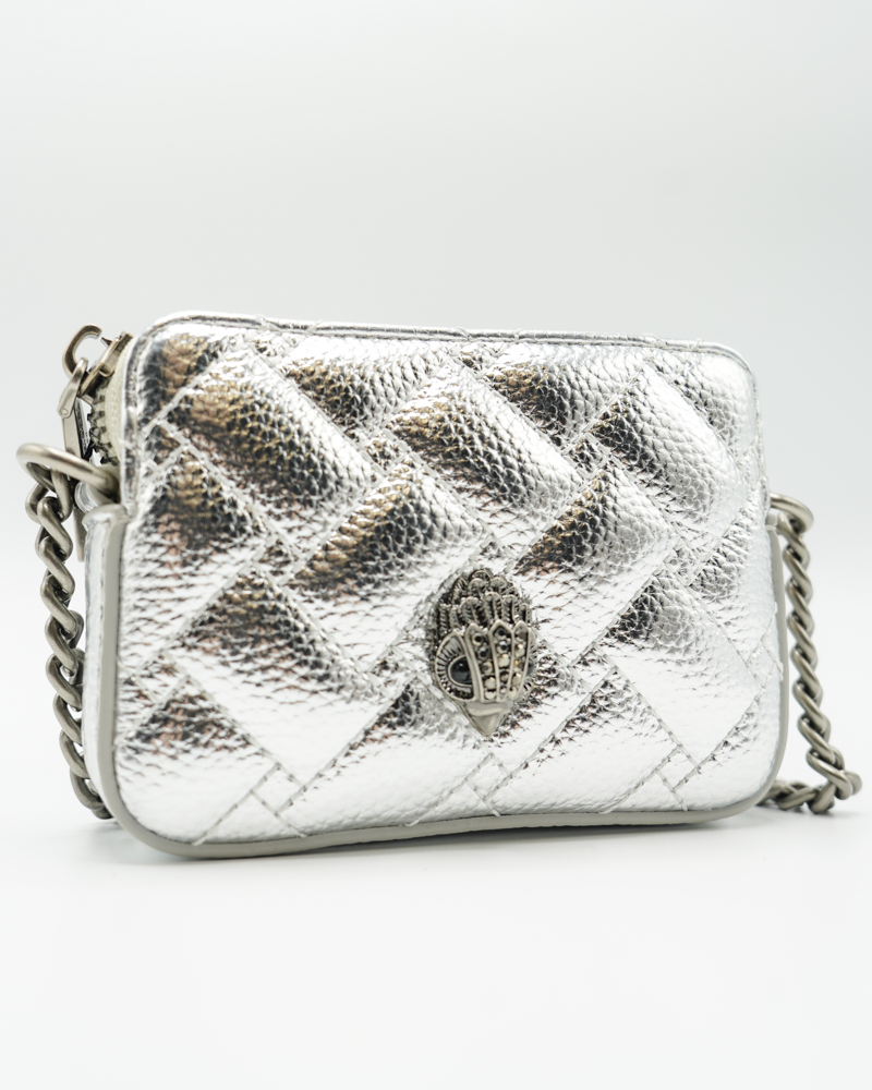 Verwen jezelf met de ingetogen elegantie van de Micro Kensington Camera Tas in zilver van Kurt Geiger. Deze compacte crossbody tas biedt zowel stijl als functionaliteit, perfect voor de moderne vrouw. Het hoogwaardige leren materiaal geeft de tas een luxe uitstraling, terwijl de zilveren kleur een vleugje glamour toevoegt aan elke outfit.