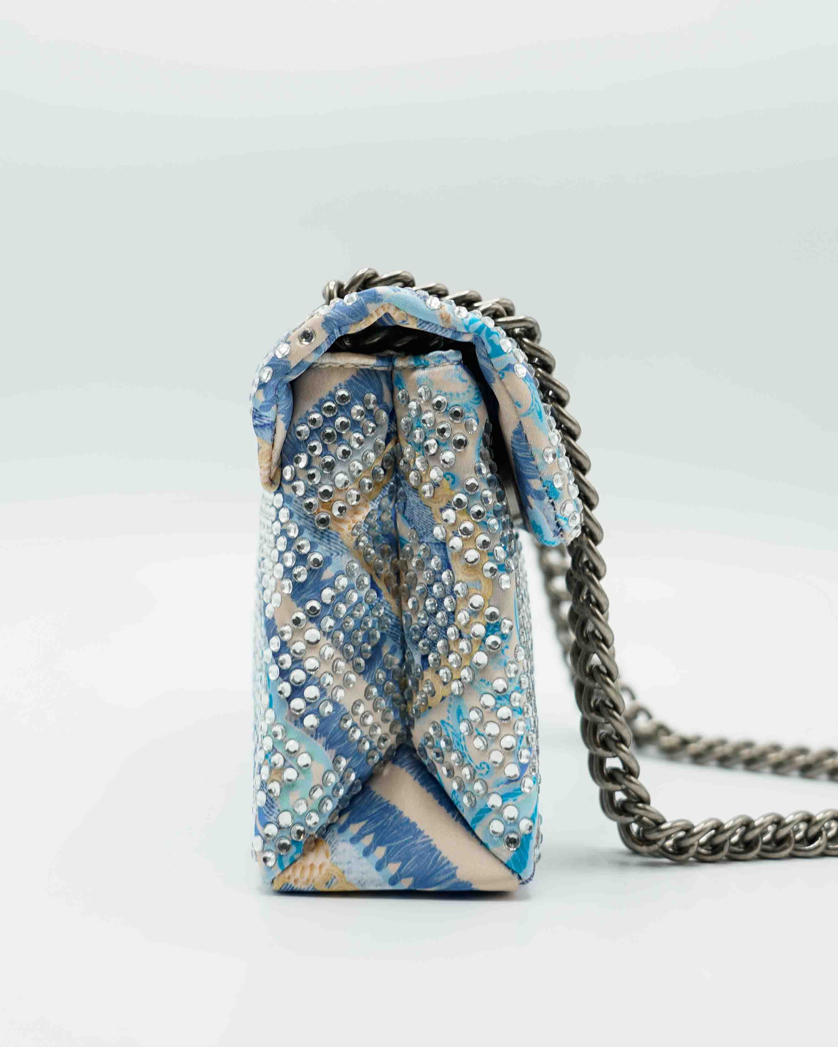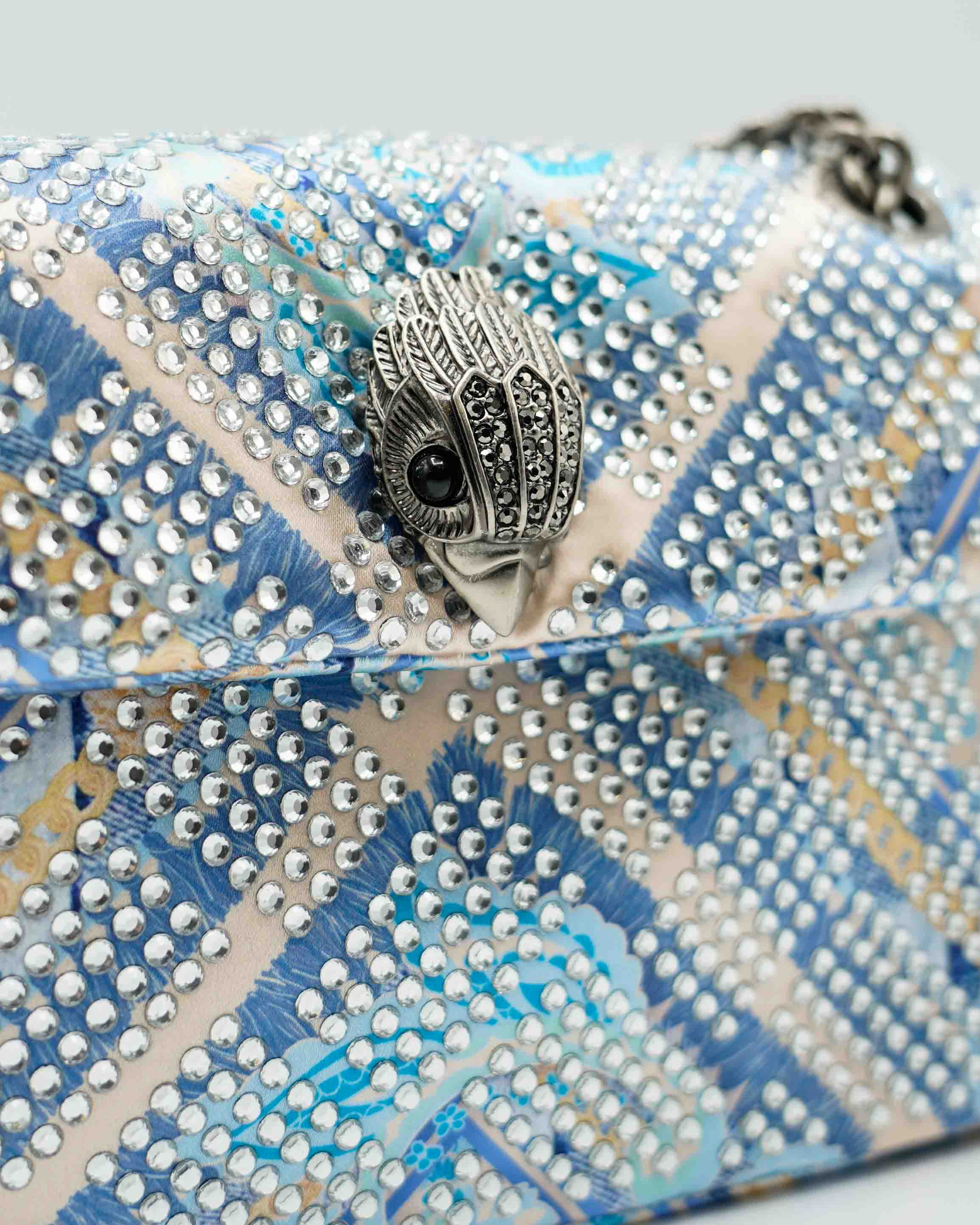 Met zijn elegante formaat biedt deze tas genoeg ruimte voor al je essentiële items zonder in te boeten op stijl. Het luxe ontwerp wordt geaccentueerd door verfijnde kettingen en het iconische vogelmotief. Deze tas is niet alleen praktisch maar ook een statement piece dat iedere outfit compleet maakt.