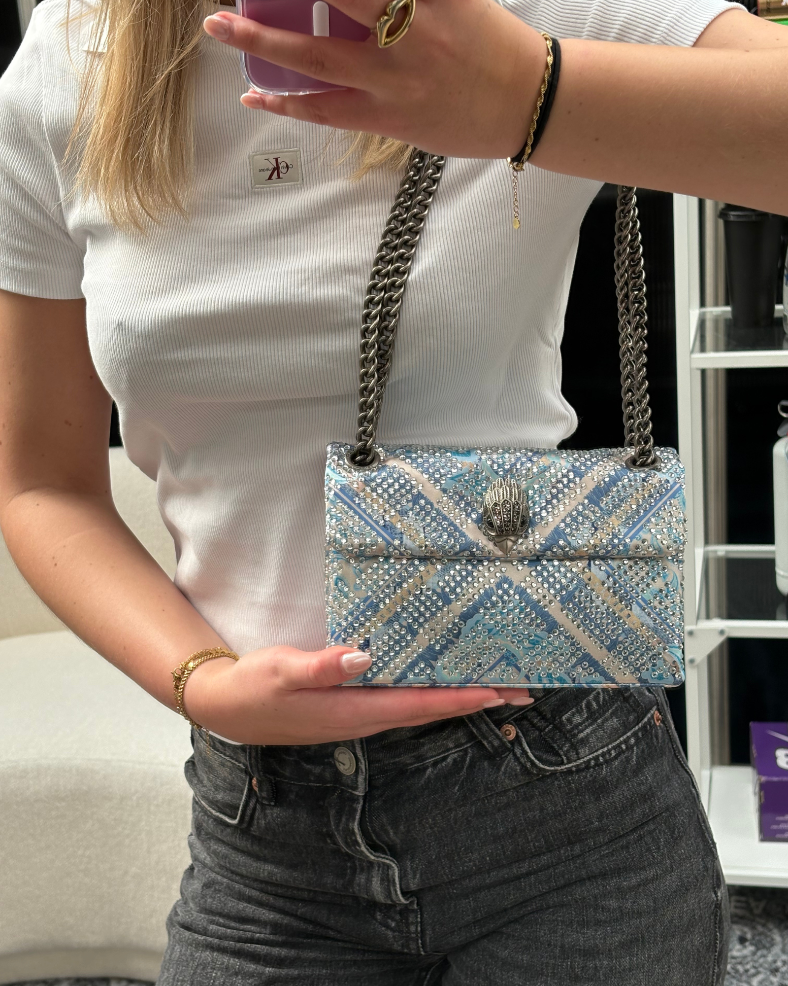 De Mini Kensington Handtas in het opvallende blauw is de ideale aanvulling op jouw garderobe. Deze handtas van het gerenommeerde Kurt Geiger is ontworpen met oog voor stijl en detail, perfect voor elke gelegenheid.
