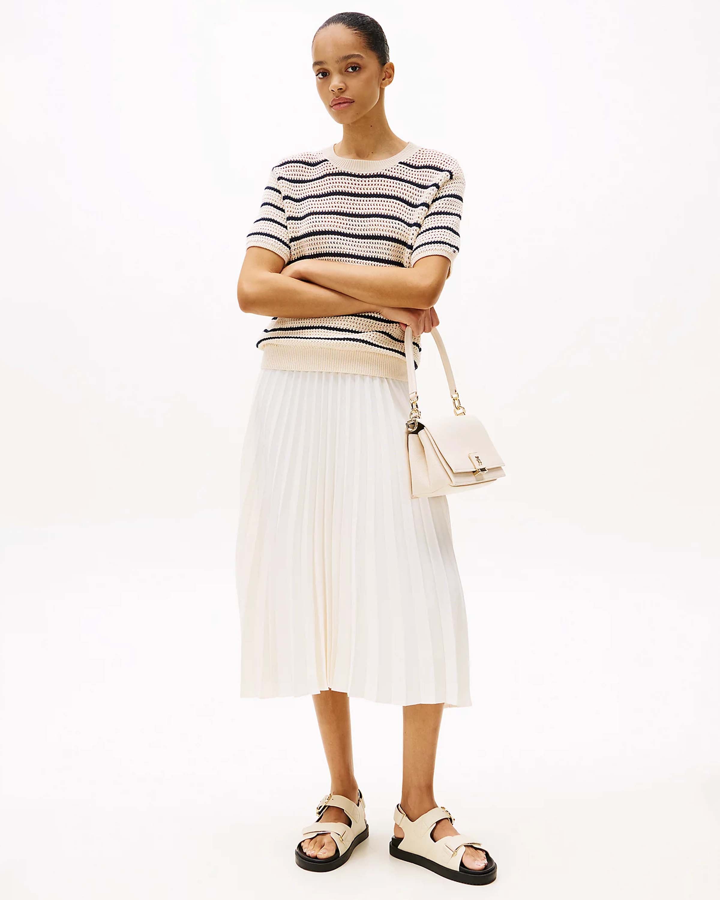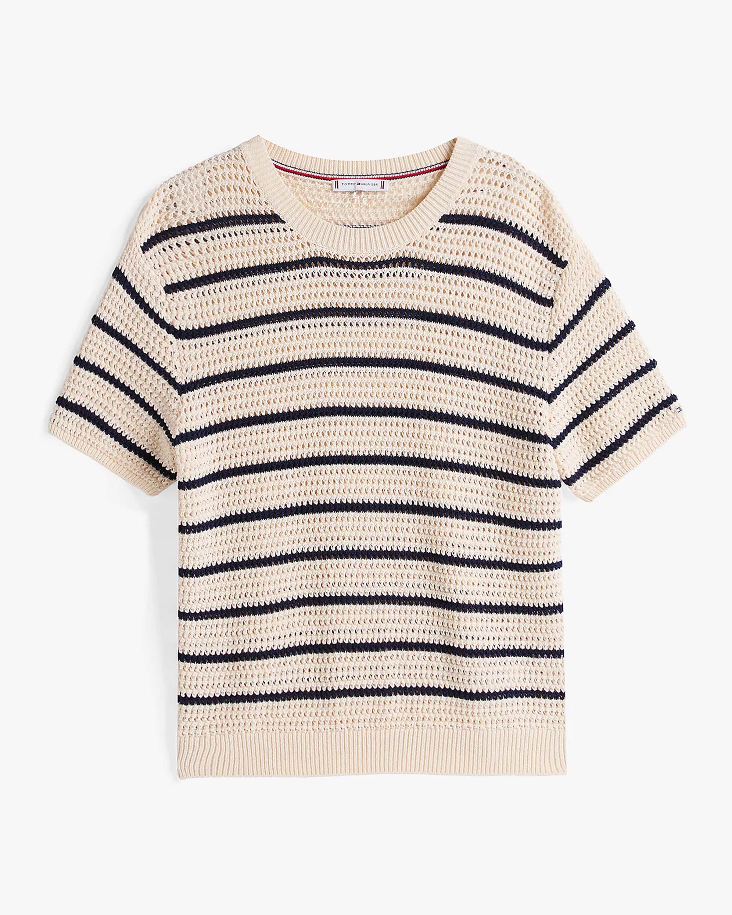 Voel je elegant met deze verfijnde Pointelle Crochet Sweater van Tommy Hilfiger. Deze veelzijdige trui in multicolor biedt een stijlvolle en luchtige look die perfect is voor zomerse dagen. Het speelse patroon en hoogwaardige katoen zorgen voor comfort en ademend vermogen, terwijl de tijdloze uitstraling eenvoudig te combineren is met je favoriete outfits. De subtiele details maken deze sweater een must-have voor elke garderobe.