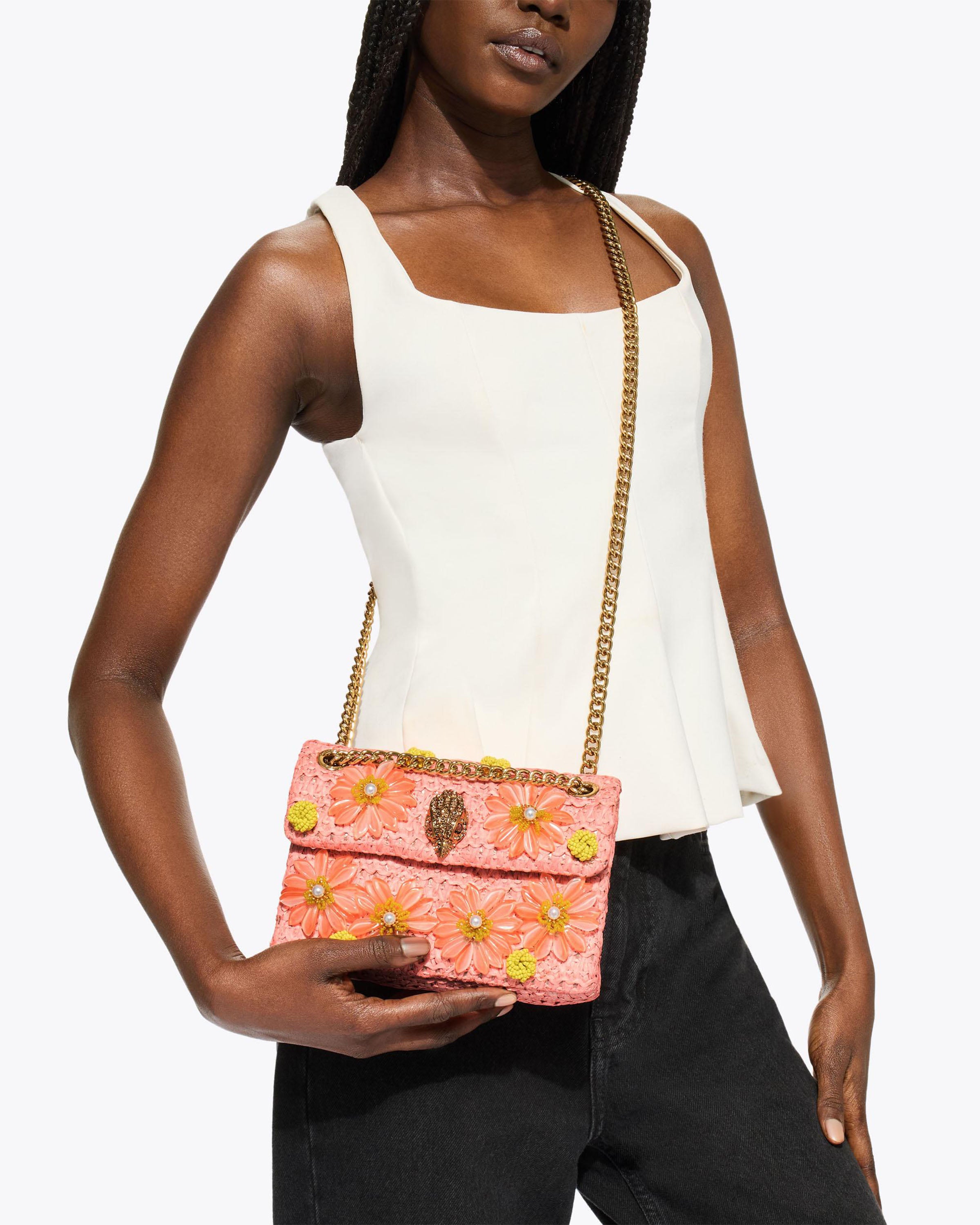 Ervaar de perfecte mix van stijl en functionaliteit met de Raffia Mini Kensington van Kurt Geiger. Deze elegante tas is niet alleen een prachtige toevoeging aan je collectie, maar biedt ook een uitstekende draagoptie voor dagelijks gebruik. De veelzijdige multicolor bloemen maken het een opvallende keuze voor elke outfit.