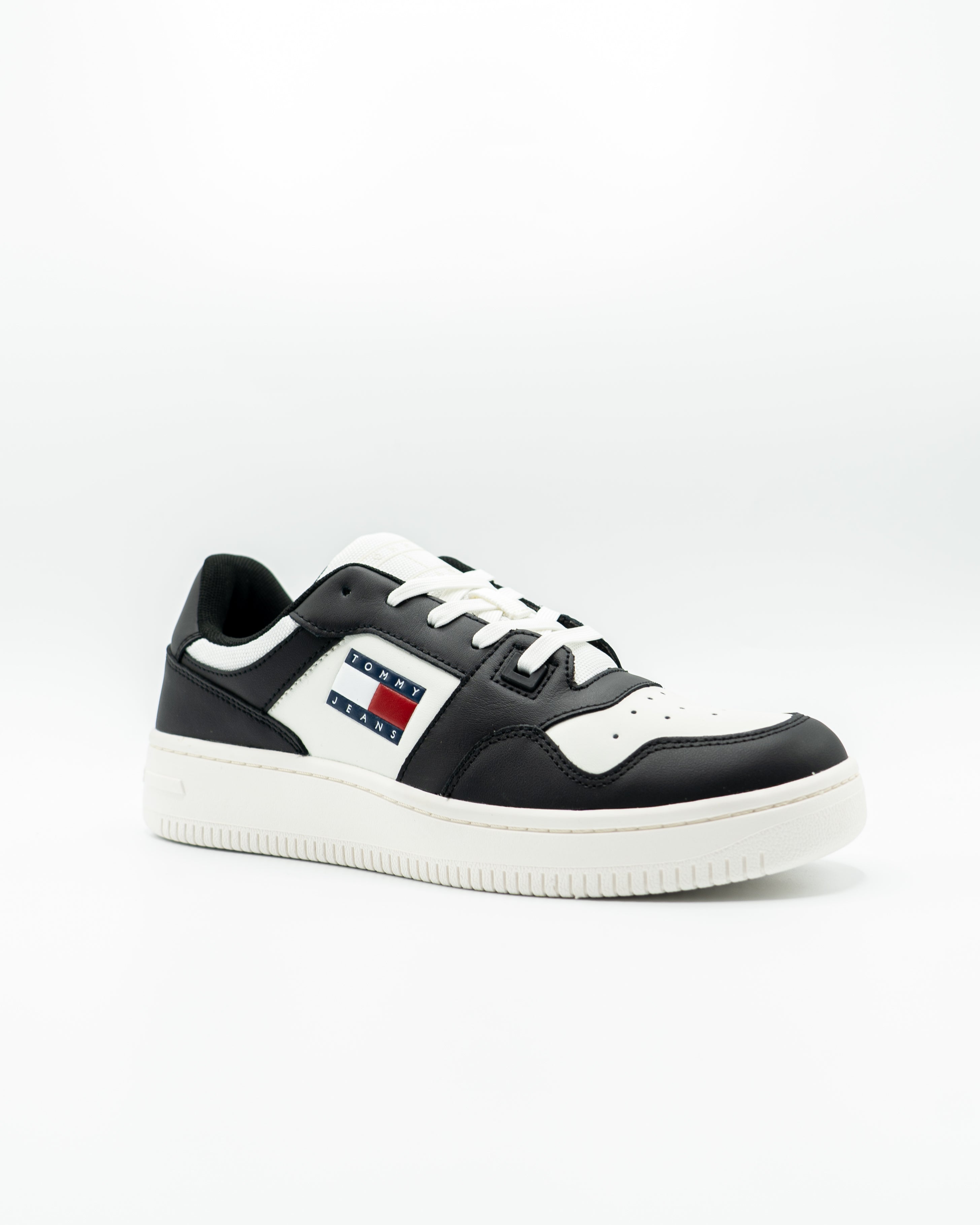 Ontdek de stijlvolle flair van de Retro Basket Sneaker. Deze zwarte sneaker belichaamt de tijdloze charme waar Tommy Jeans om bekend staat. Met zijn leren bovenwerk biedt hij niet alleen een trendy uitstraling maar ook duurzaamheid en comfort. De stevige rubberen zool zorgt voor optimale grip, ideaal voor dagelijkse avonturen.