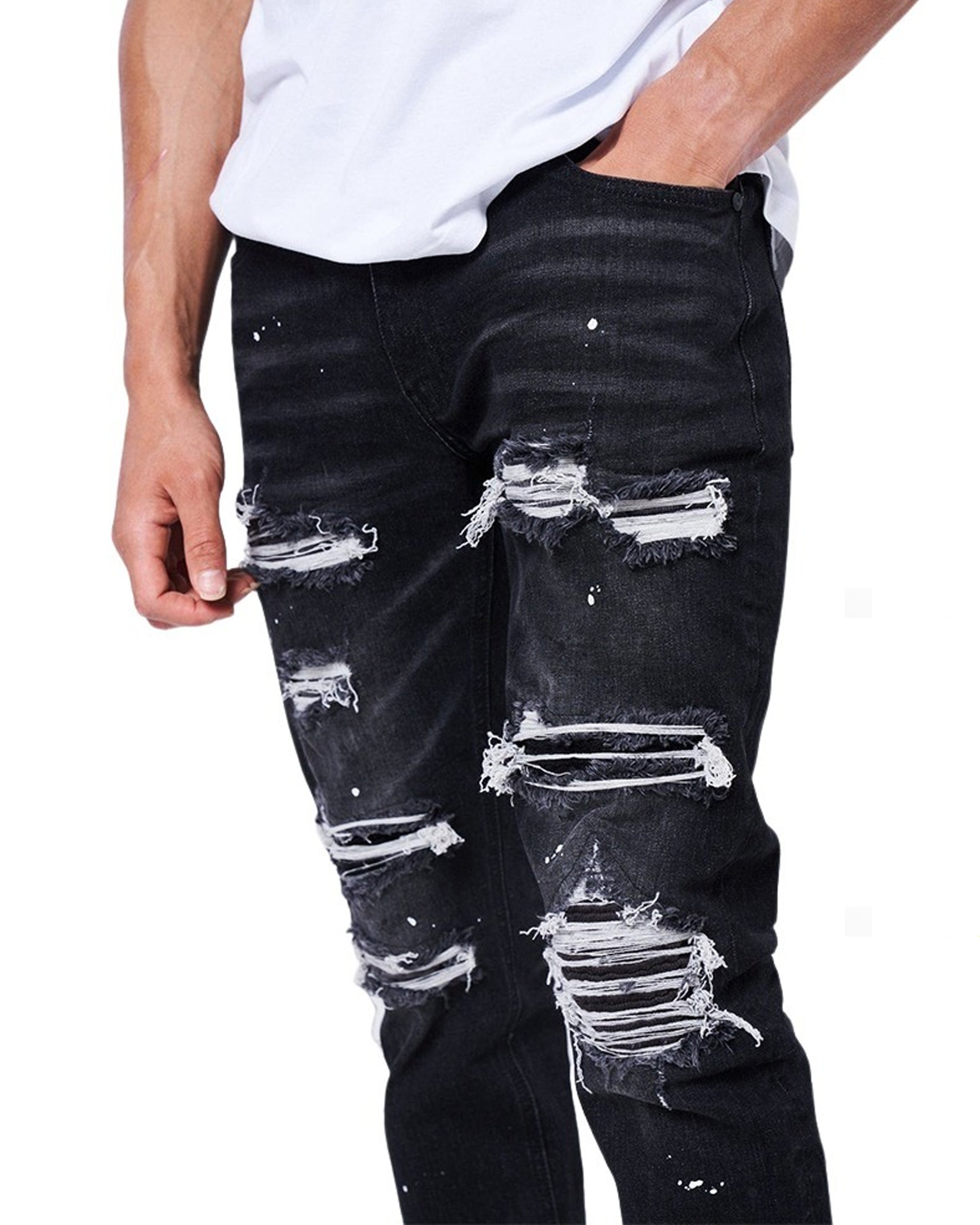 Sanko Slim Fit Ripped Distressed Spijkerbroek