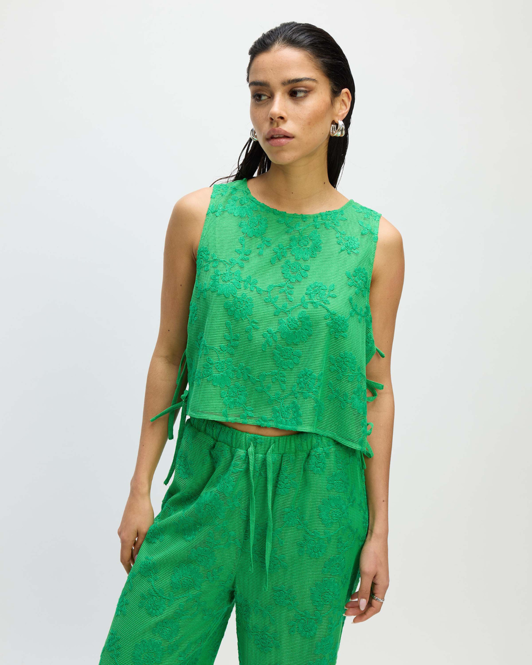 De *Mara broek* flatteert het silhouet en biedt ultieme bewegingsvrijheid, terwijl de *Gabrille top* een moderne en frisse look creëert. Moeiteloos chic, deze outfit haalt je innerlijke elegantie naar voren.