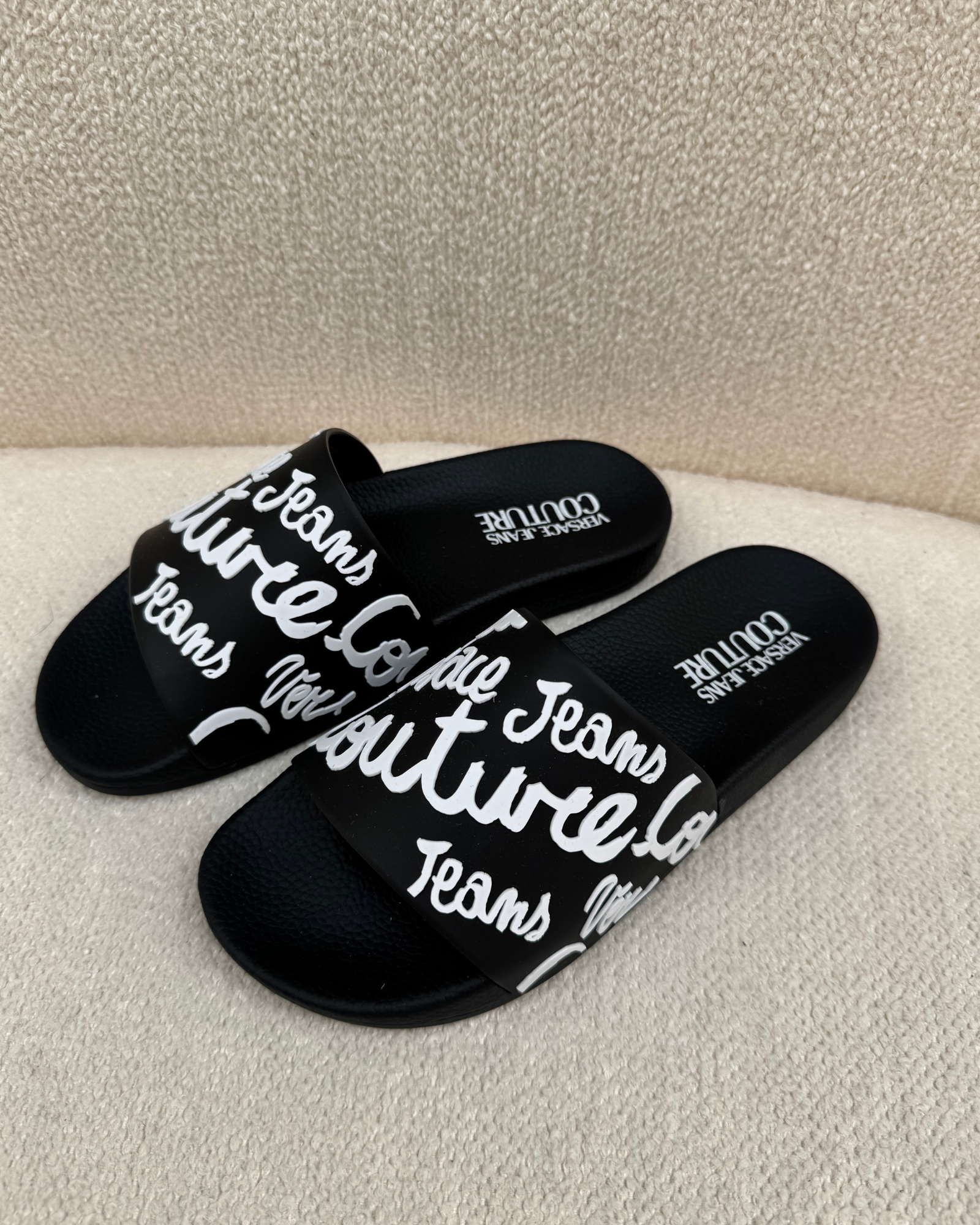 Ontdek de charme van de eenvoud met de slippers van Versace Jeans Couture. Deze stijlvolle Slippers zijn de perfecte toevoeging aan je zomercollectie. De klassieke zwarte kleur past uitstekend bij elke casual outfit en biedt een tijdloze look. Het comfortabele ontwerp van deze Slippers zorgt ervoor dat je moeiteloos van het strand naar een diner kunt bewegen. Of je nu een wandeling langs de kust maakt of ontspant bij het zwembad, deze slippers bieden ultiem draagcomfort. Kies voor elegantie met een subtiele twist en voel je zelfverzekerd overal waar je gaat.