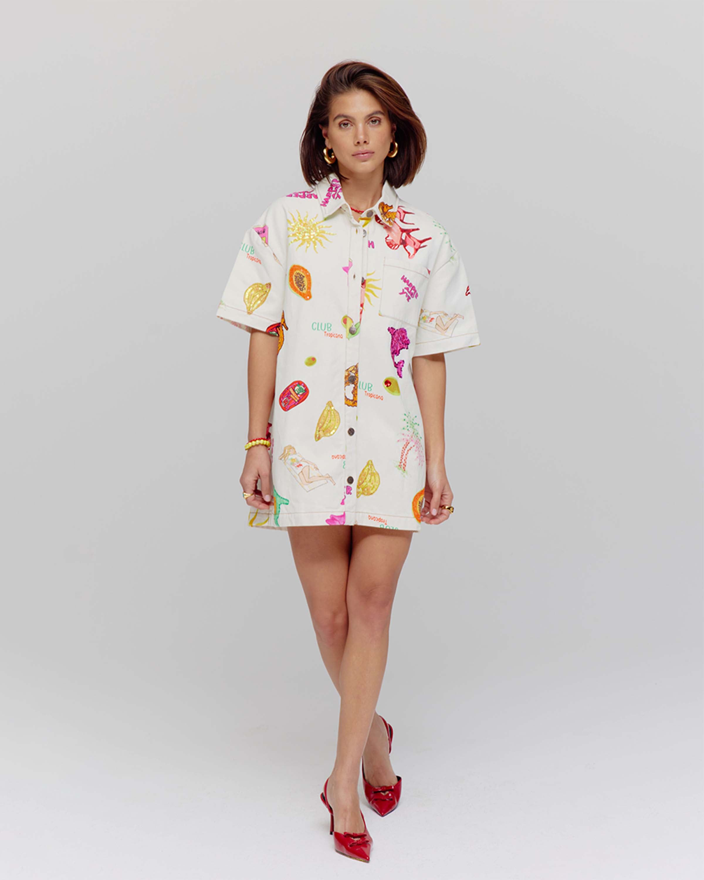 Ontdek de veelzijdigheid van de Tessa Blouse in een sprankelende multicolor print. Deze blouse met korte mouwen en speelse details straalt vrouwelijkheid en verfijning uit. Perfect voor elke gelegenheid, of je nu een casual dagje uit plant of een stijlvolle avond. Het luchtige katoen zorgt voor comfort, terwijl de opvallende kleuren je garderobe verfrissen.
